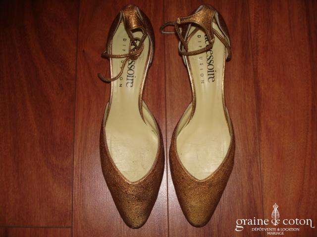 Ensemble trois pièces ivoire clair. Top décolleté en V à recouvrir d’un boléro en dentelle à manches courtes. Jupe taille haute en mousseline de soie fluide, traîne. Délicate, chic et …