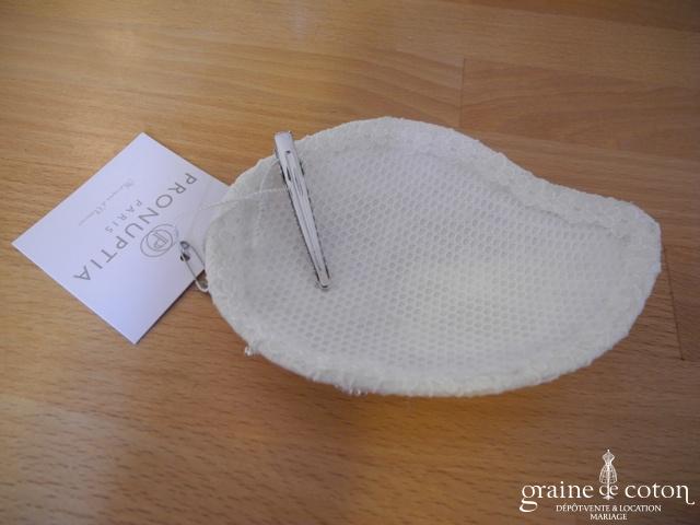 Voile long blanc de 2-3 mètres, non monté sur peigne et bordé de dentelle. Cela permet un réglage de la longueur de traîne à souhait.