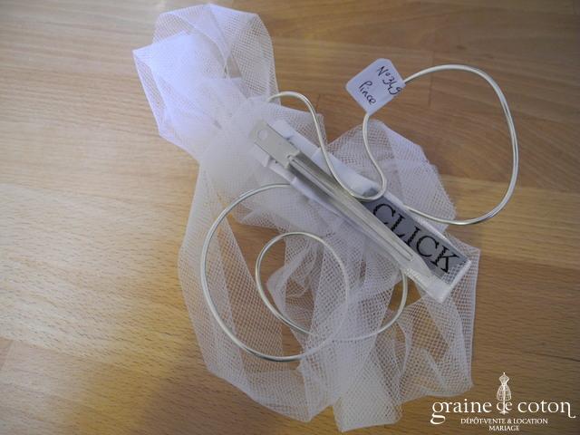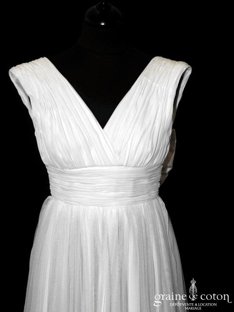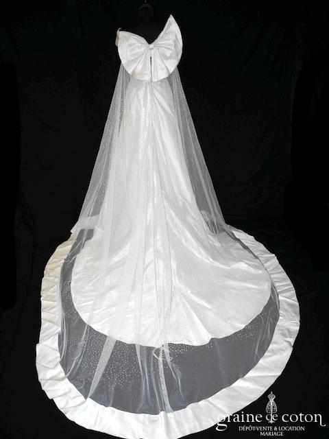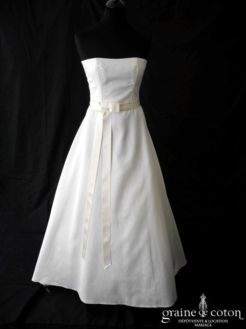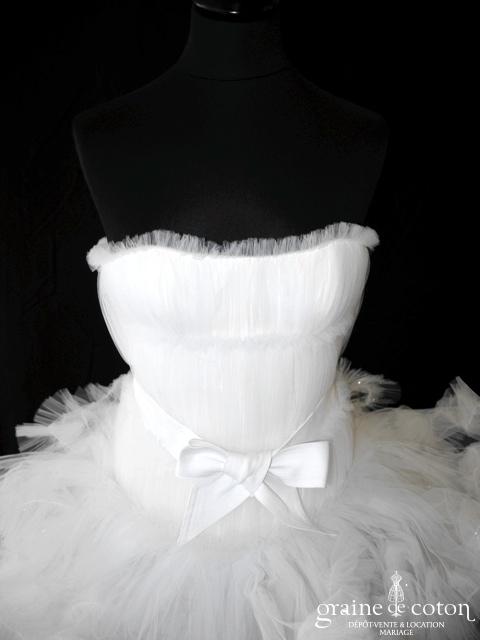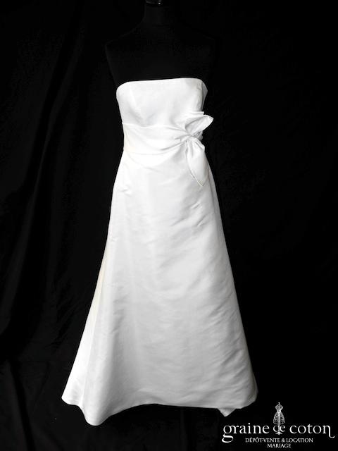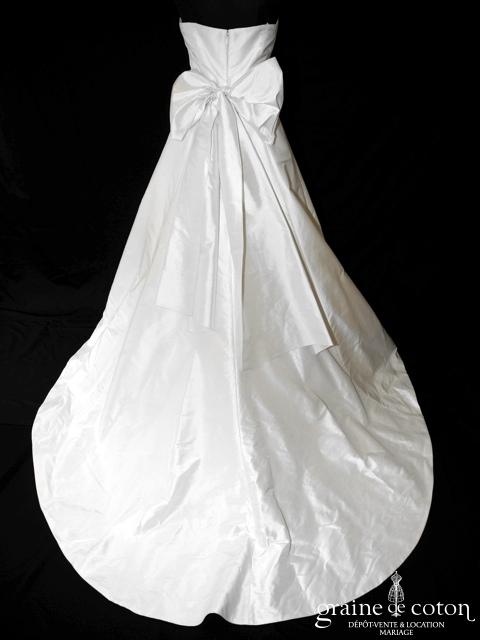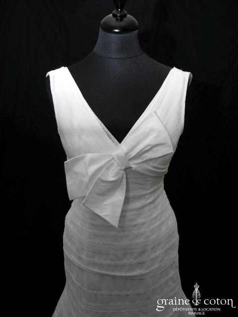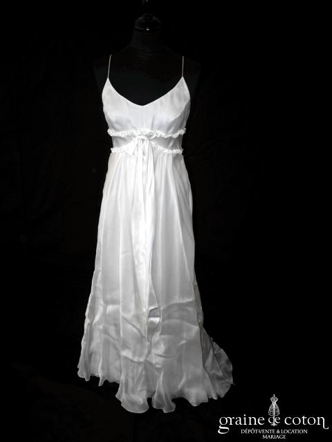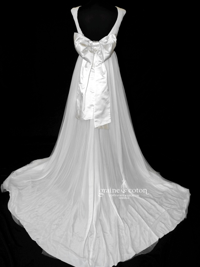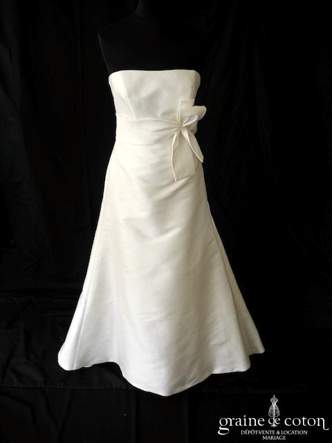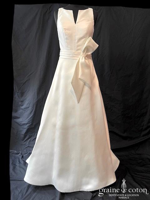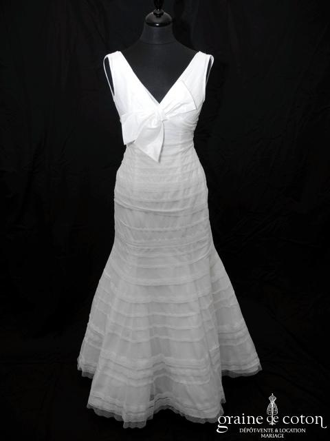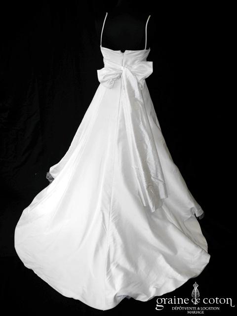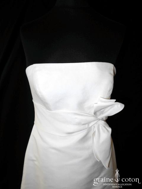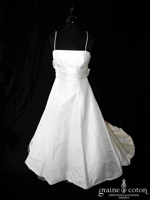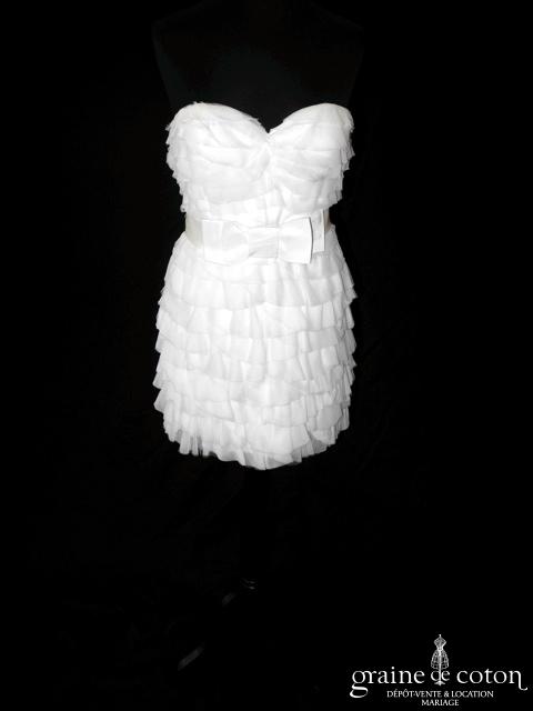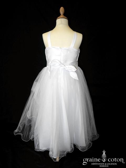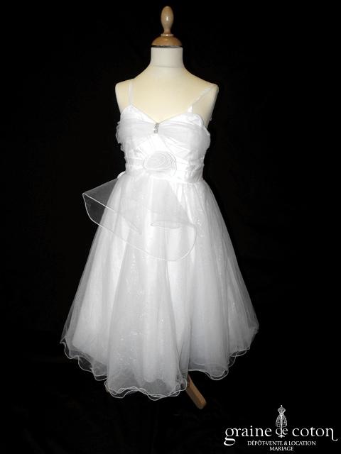 Robe demoiselle d’honneur blanche avec noeud en tulle et strass.