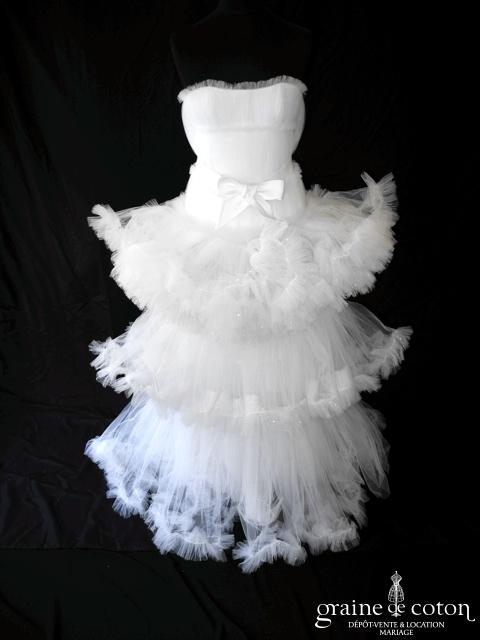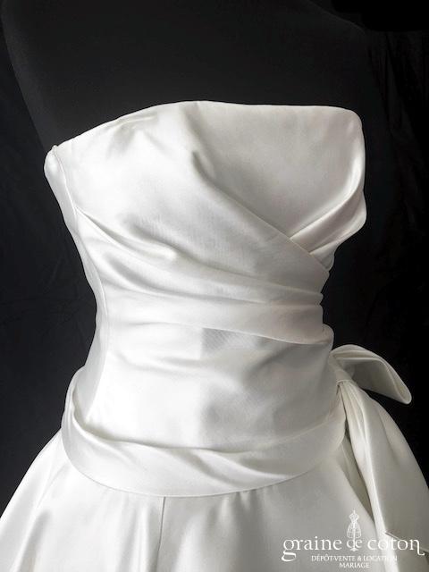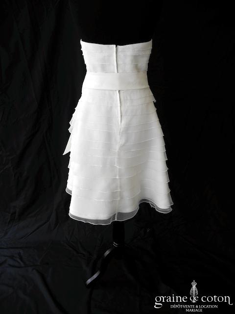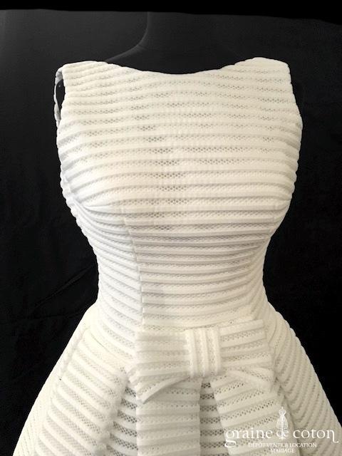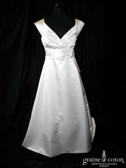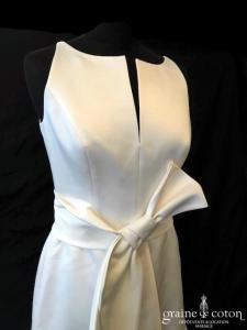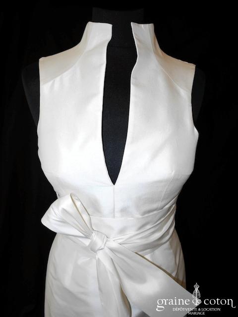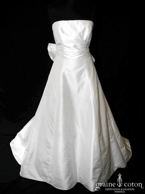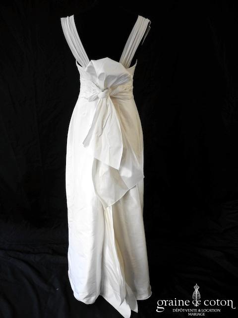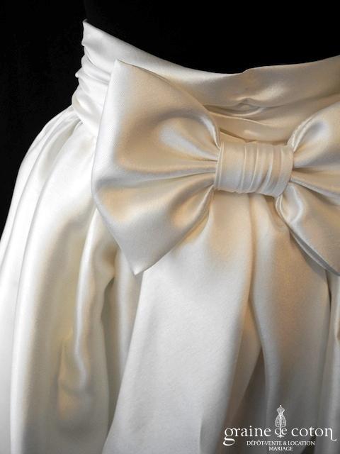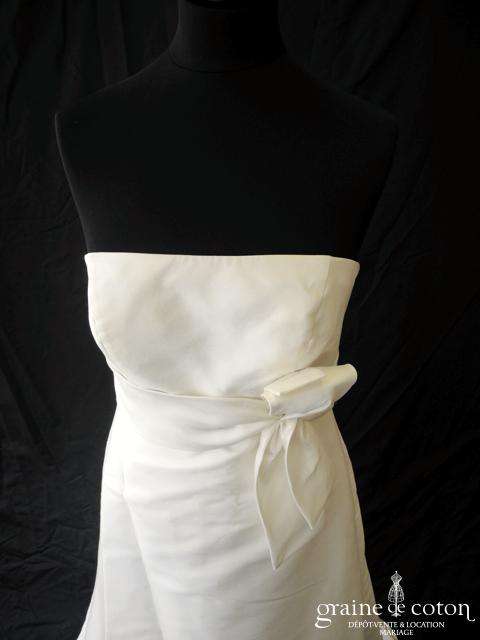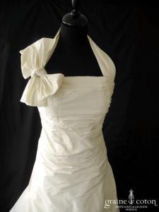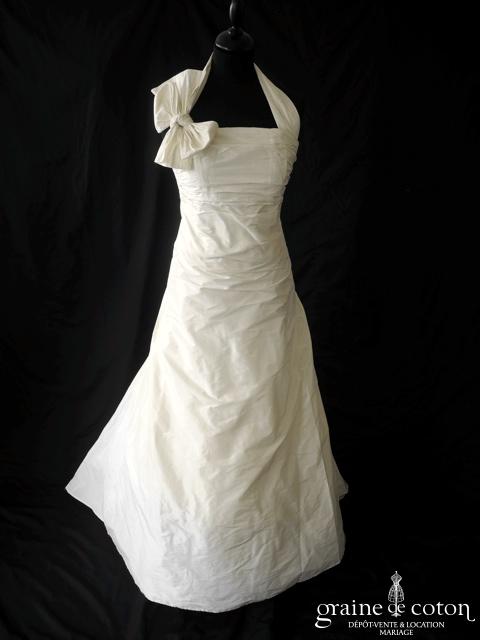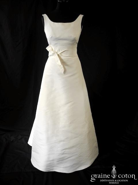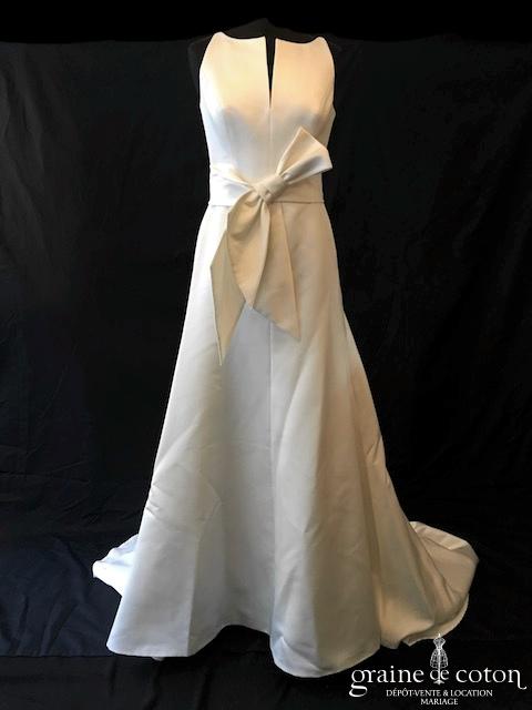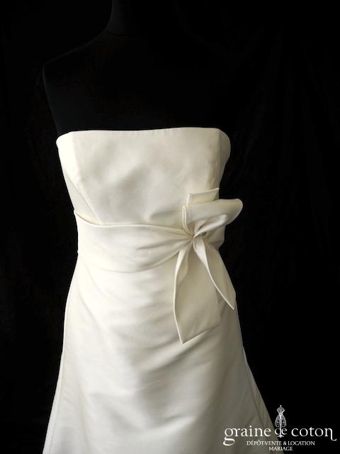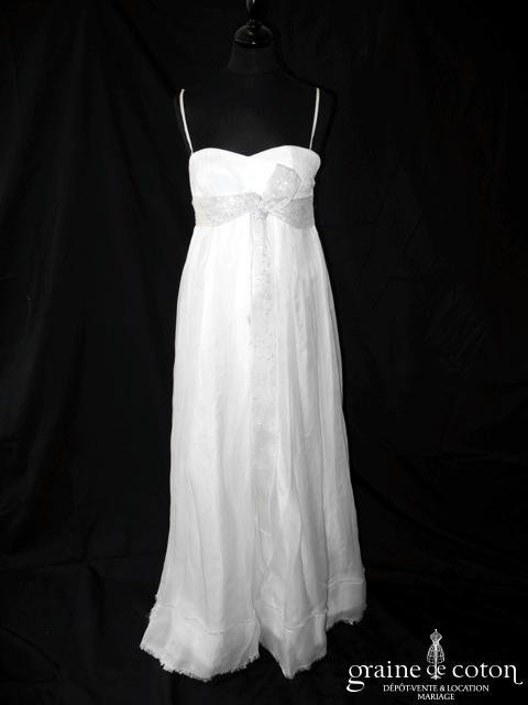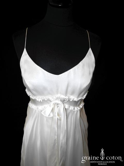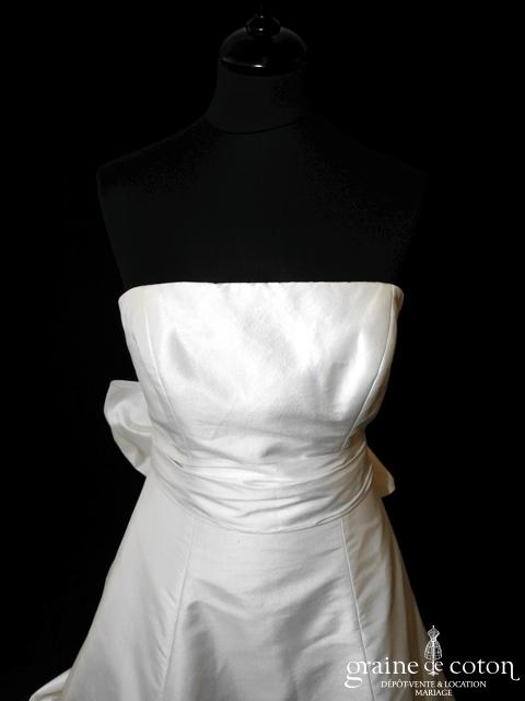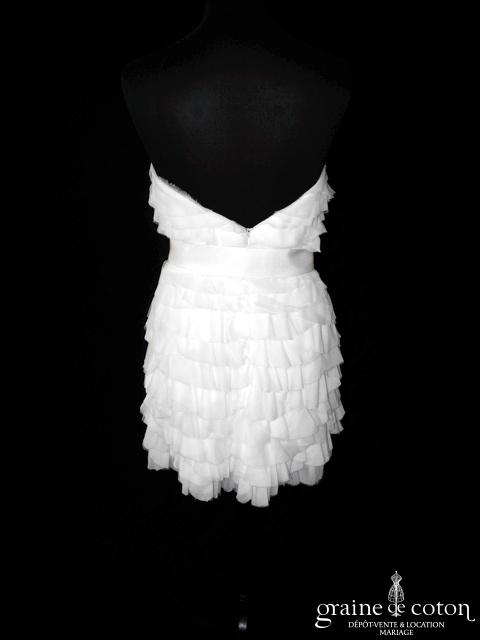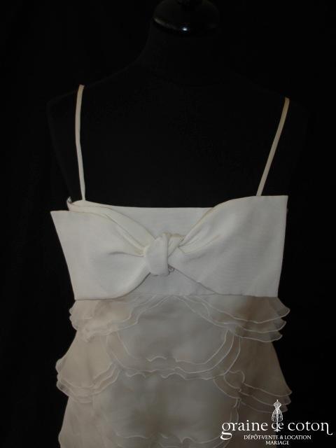 Robe demoiselle d’honneur blanche avec noeud en tulle et strass.