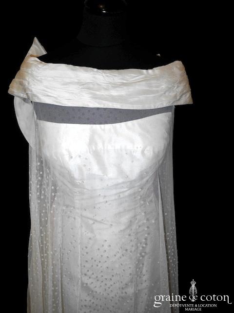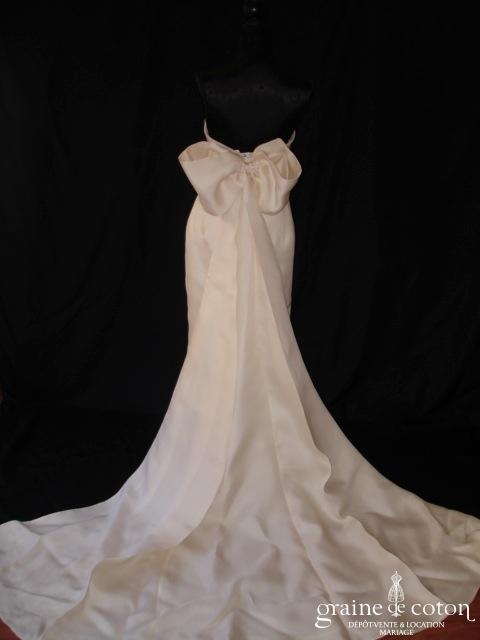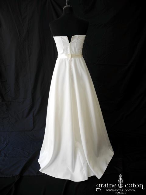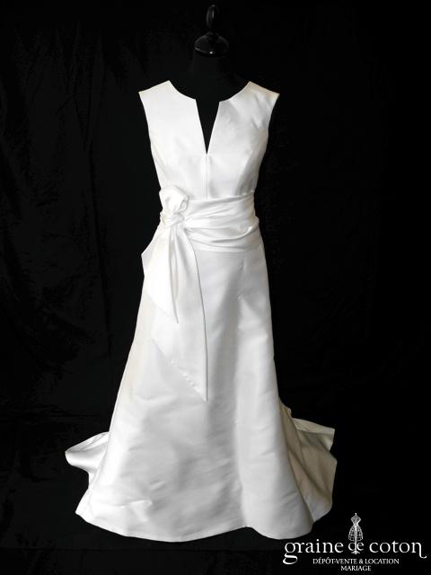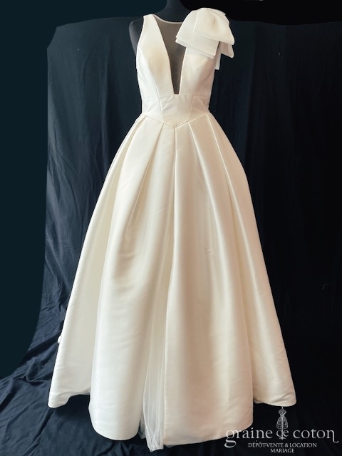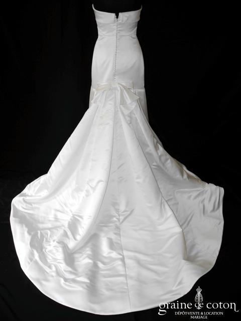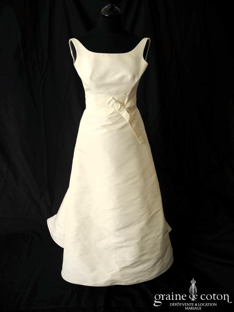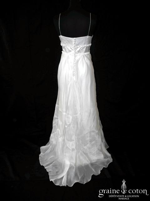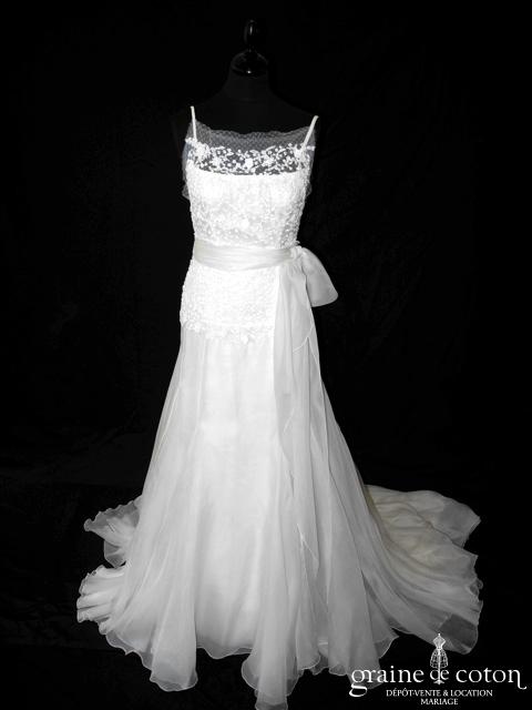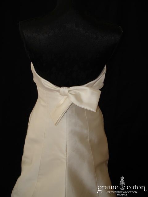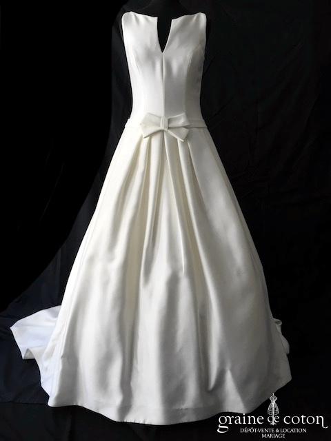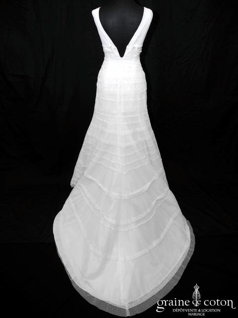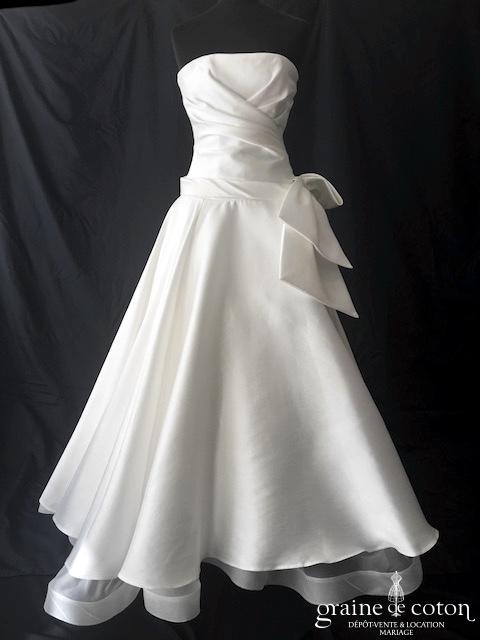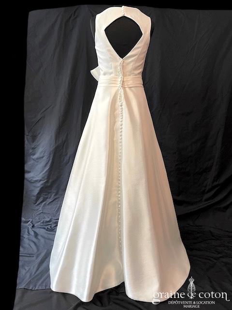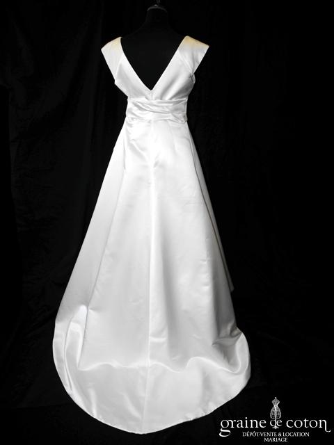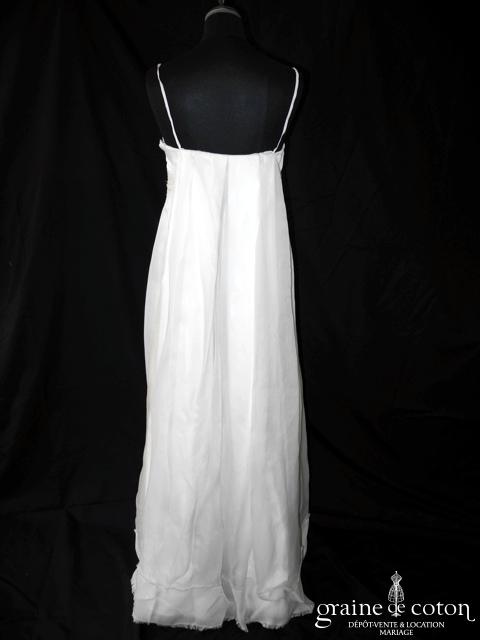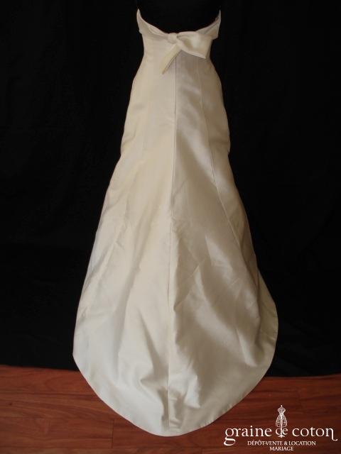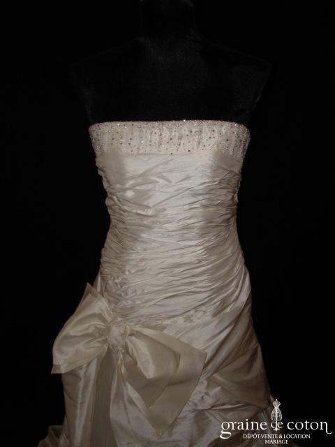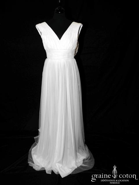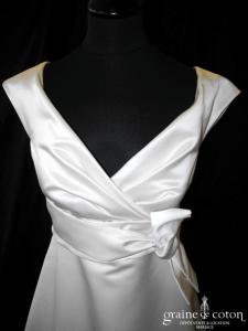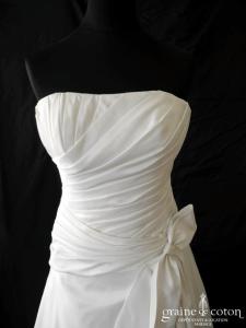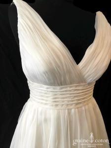 Robe demoiselle d’honneur blanche avec noeud en tulle et strass.