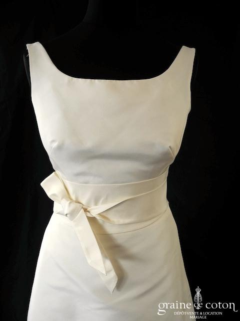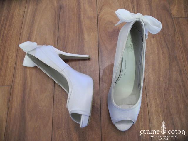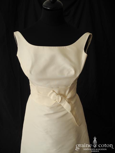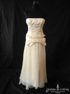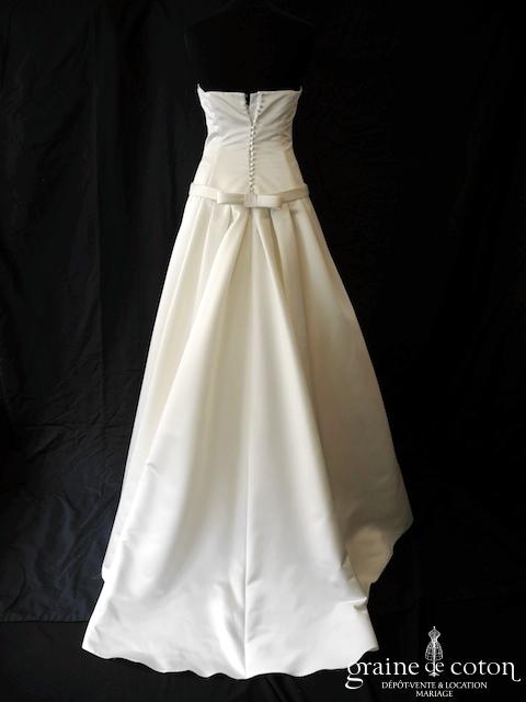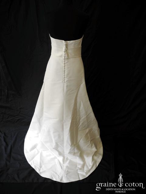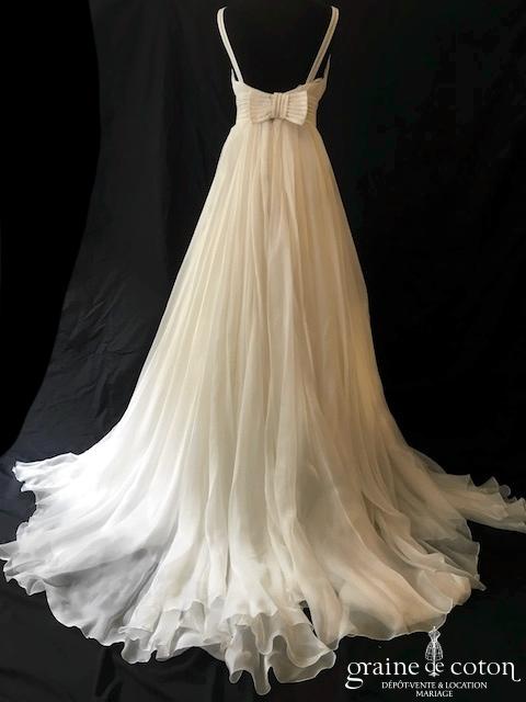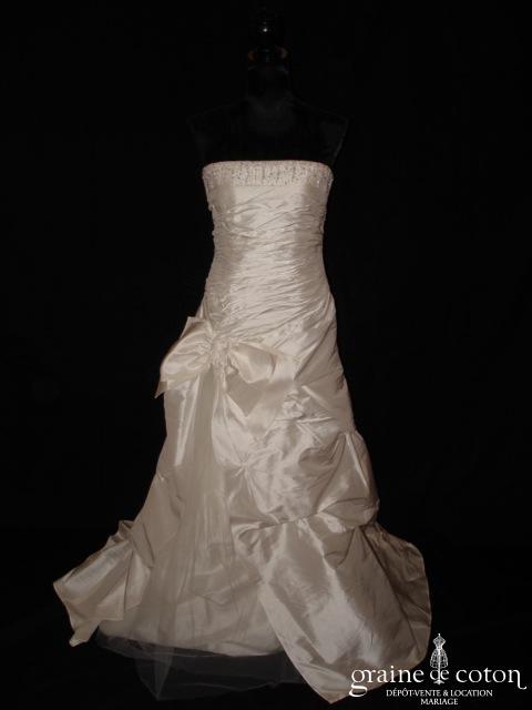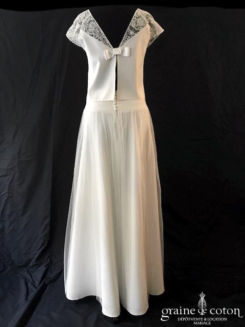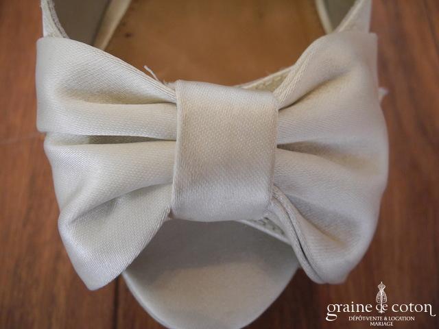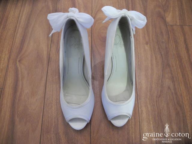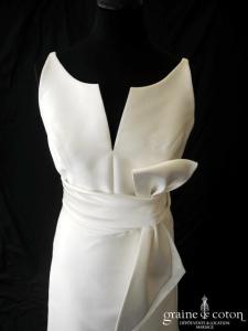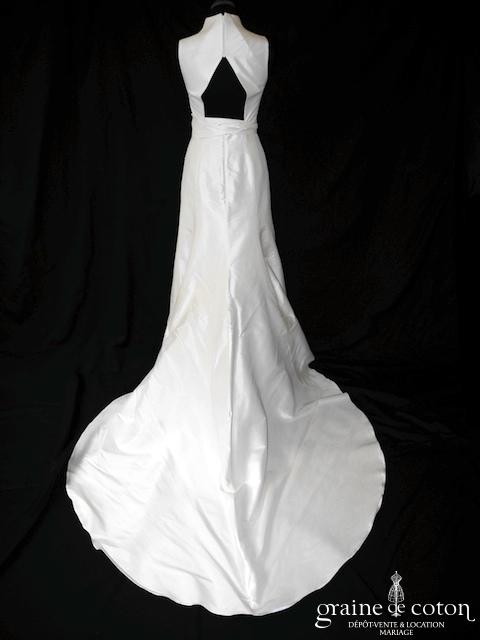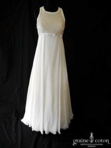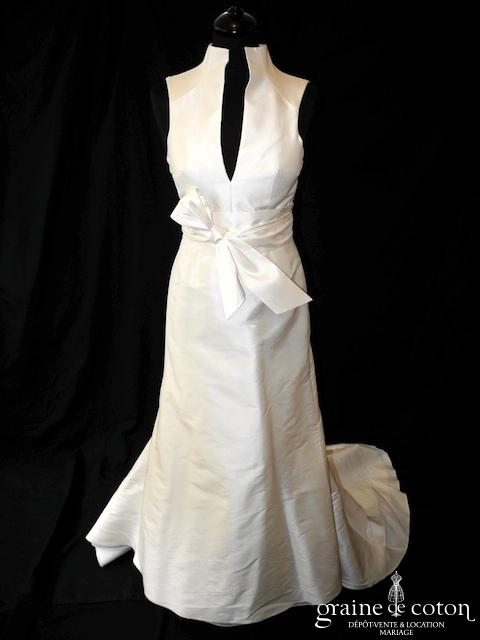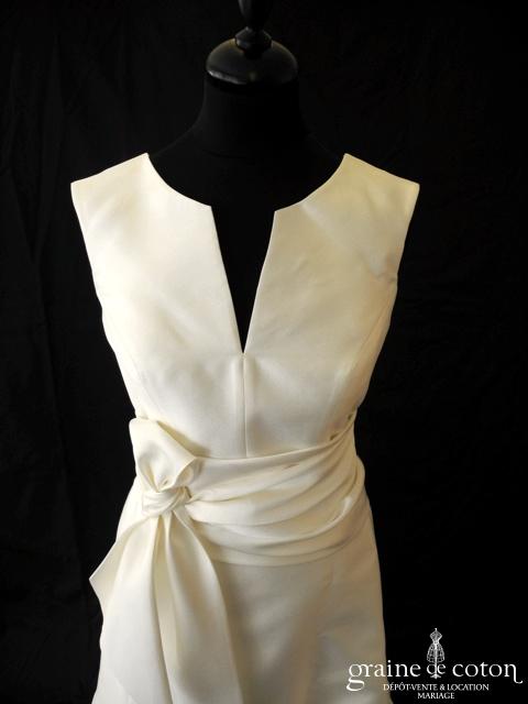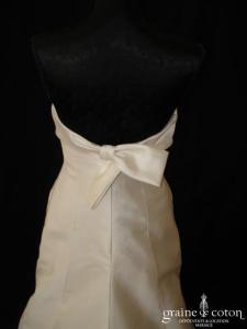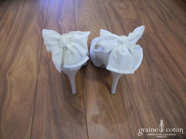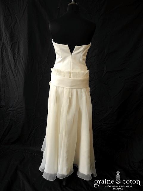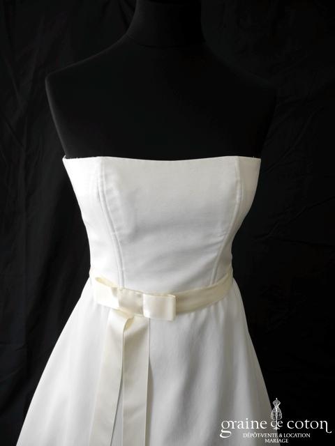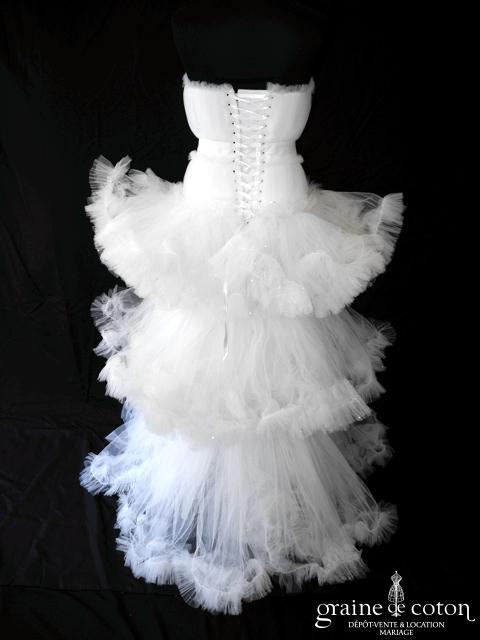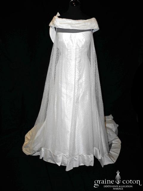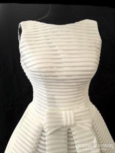 Robe demoiselle d’honneur blanche avec noeud en tulle et strass.