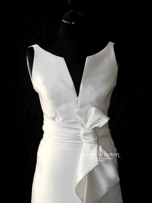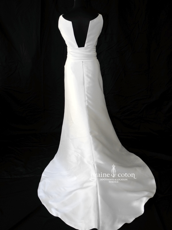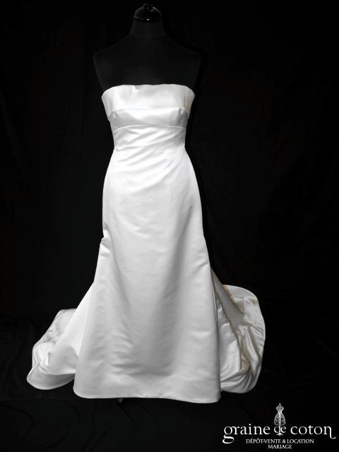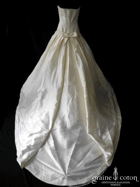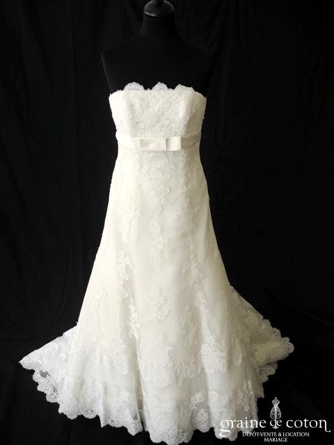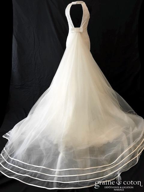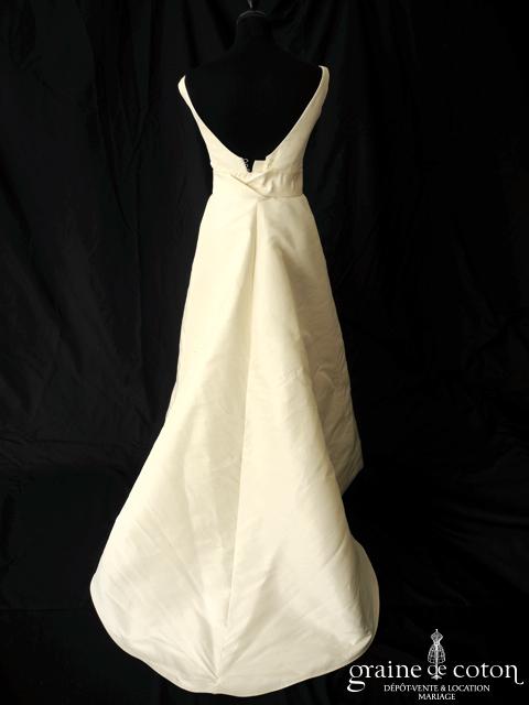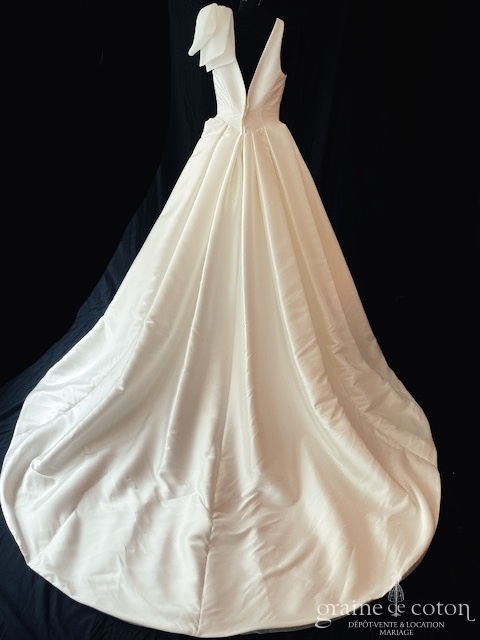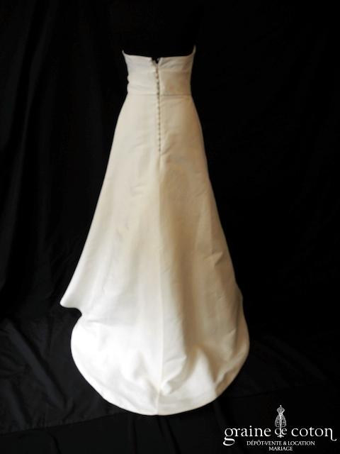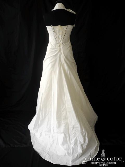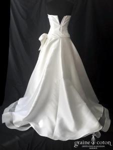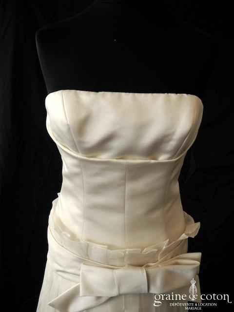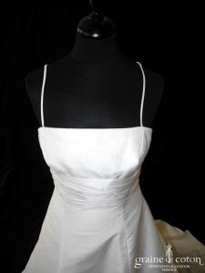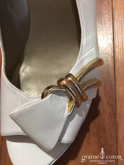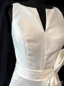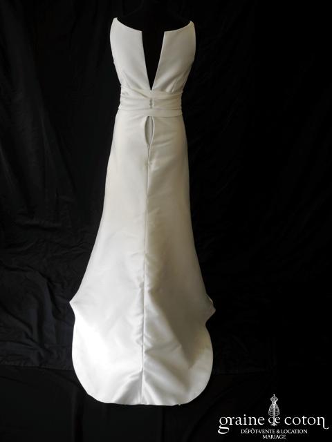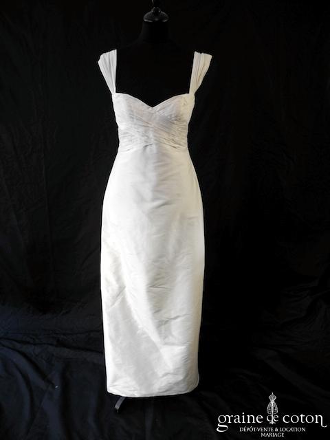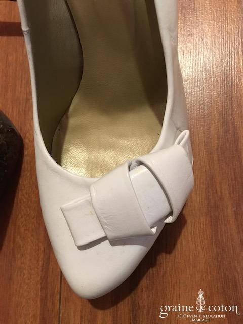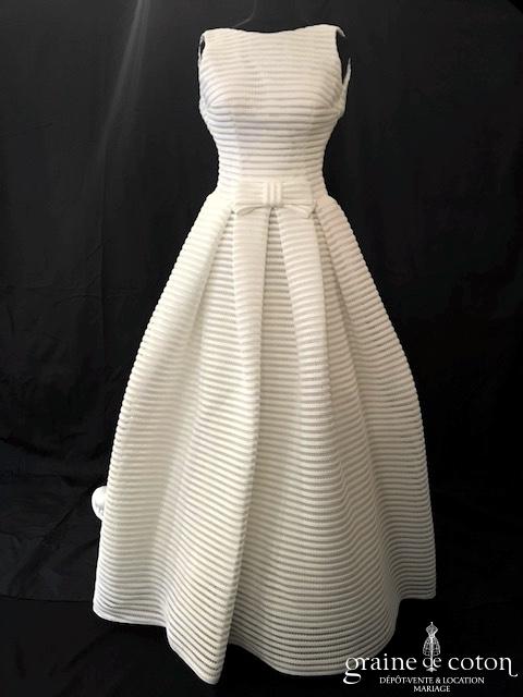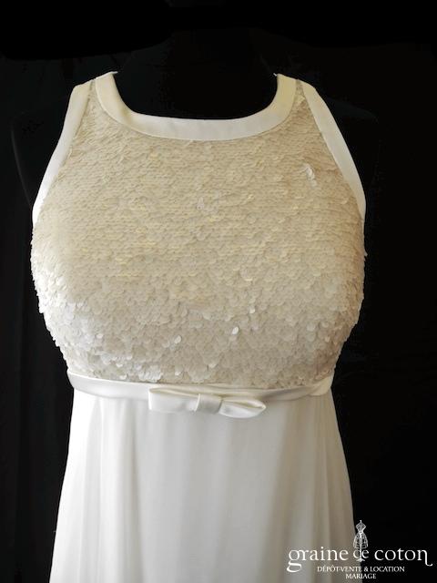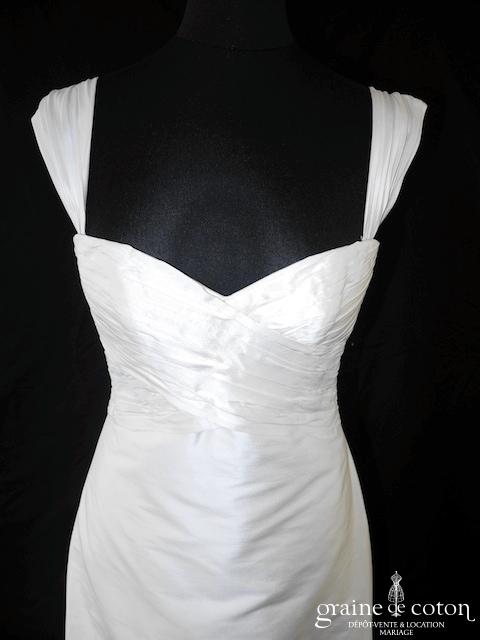 Robe demoiselle d’honneur blanche avec noeud en tulle et strass.