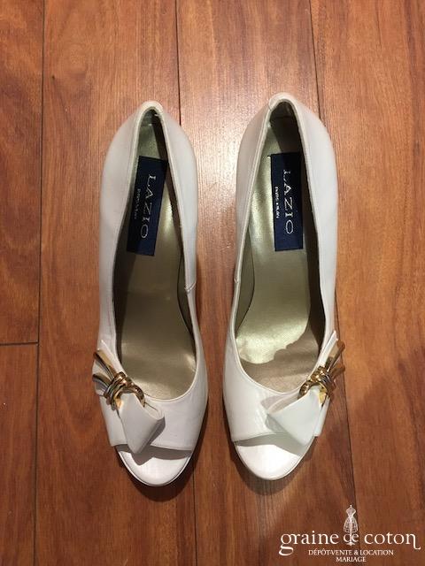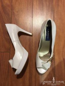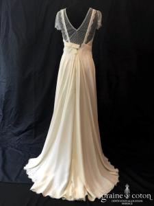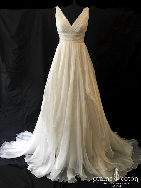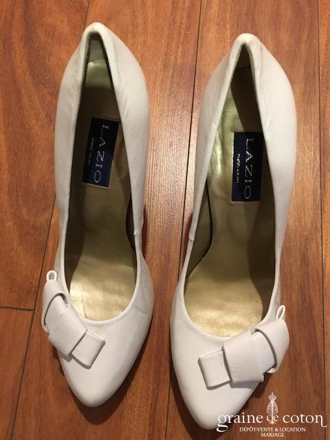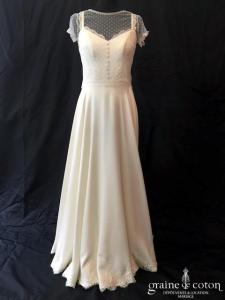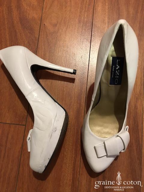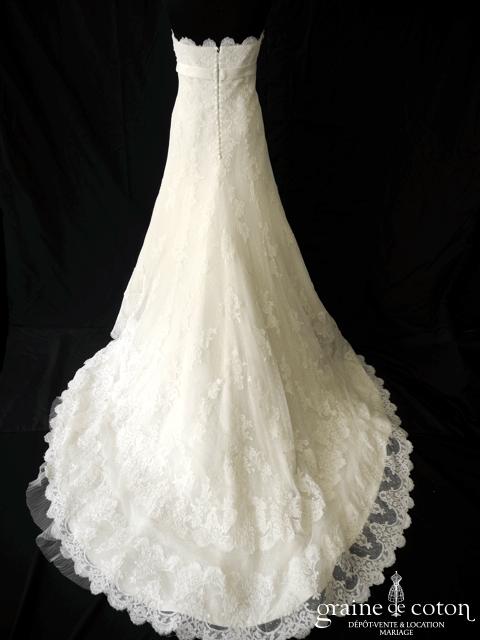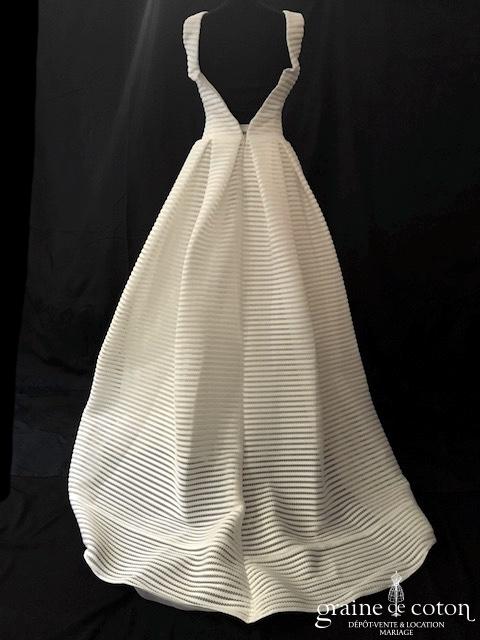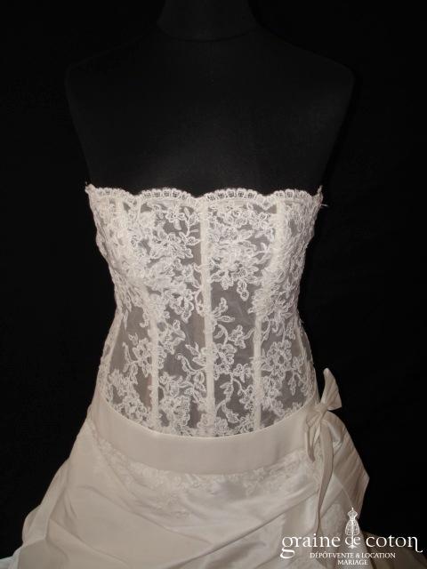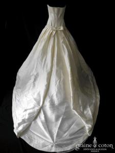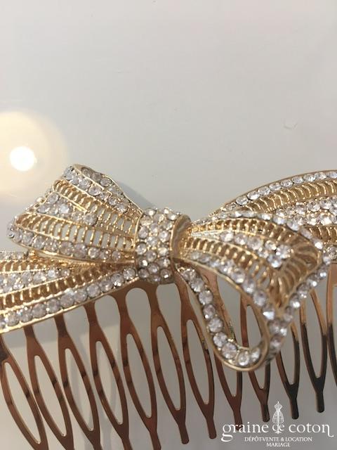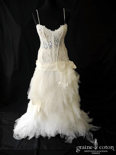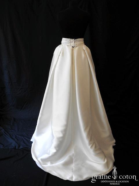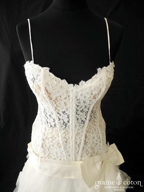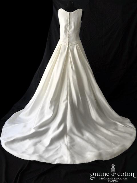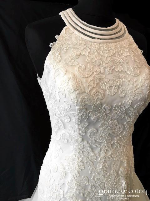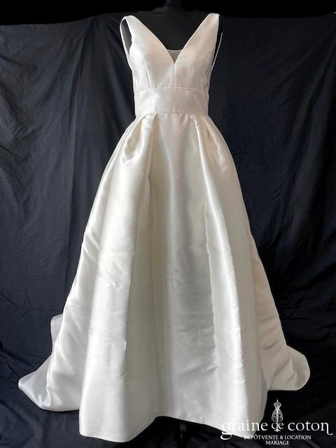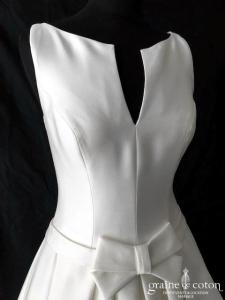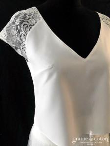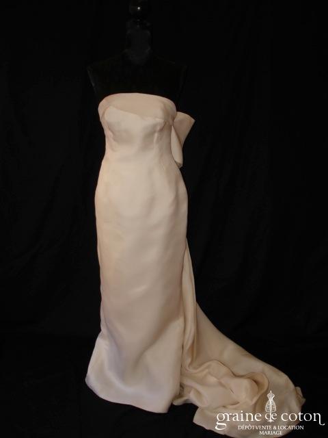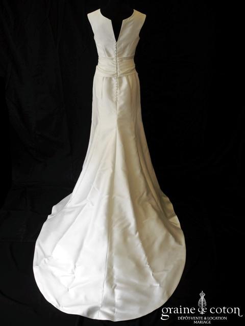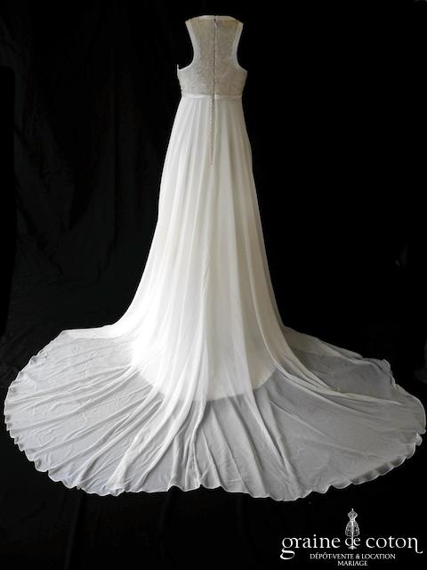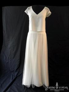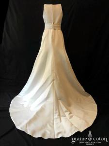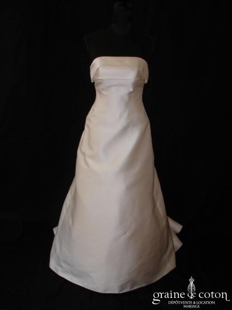 Robe demoiselle d’honneur blanche avec noeud en tulle et strass.