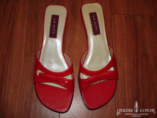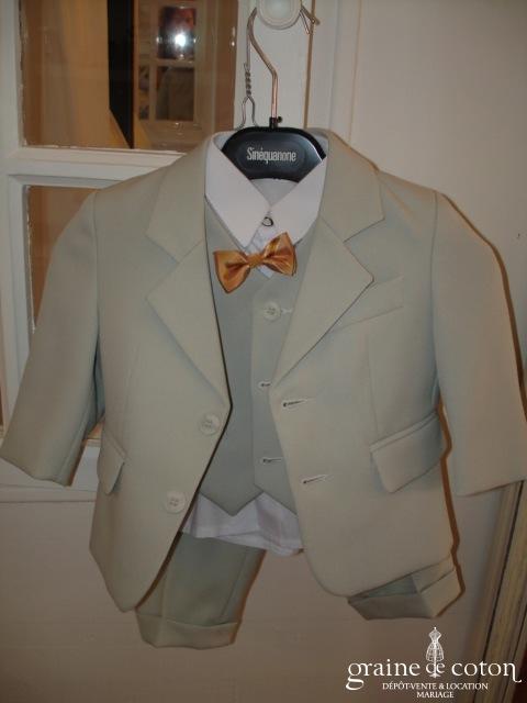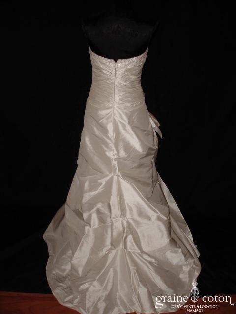 Robe demoiselle d’honneur or-saumon avec noeud en satin et tulle.