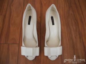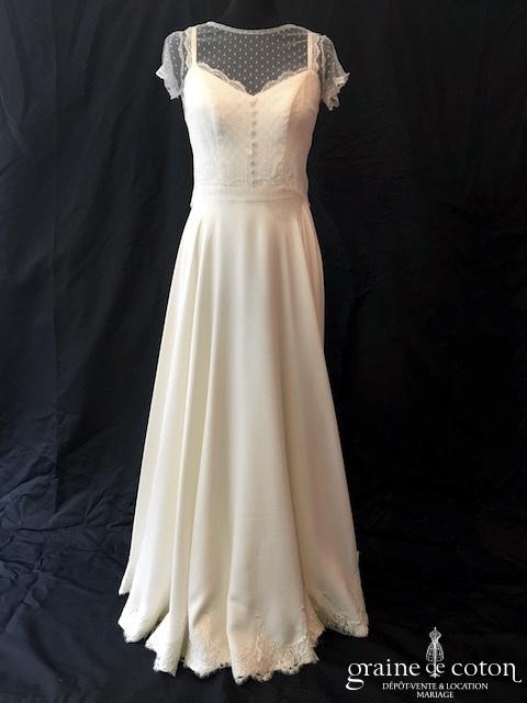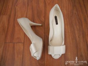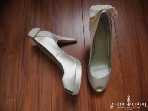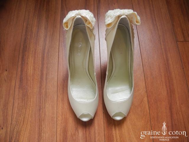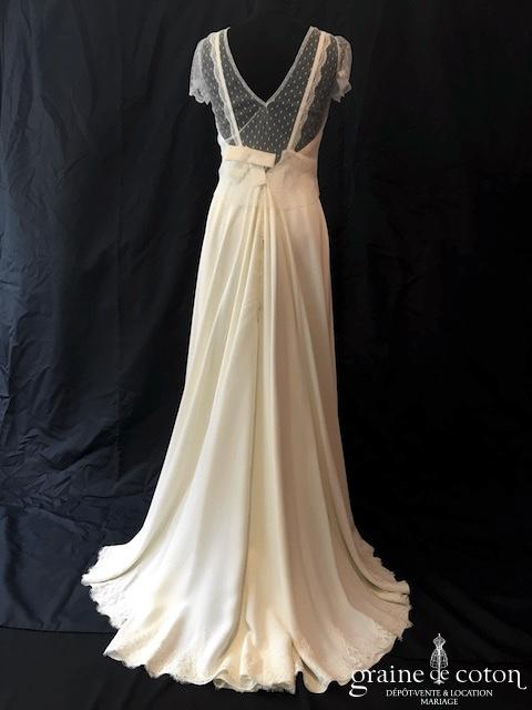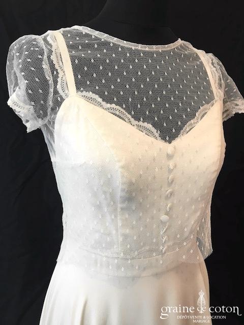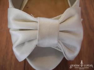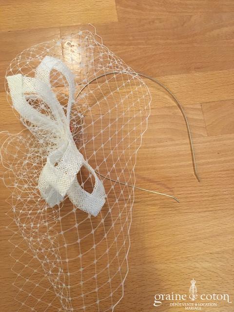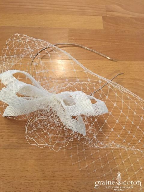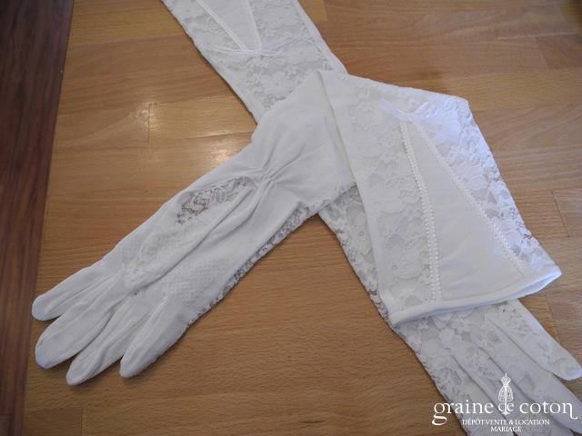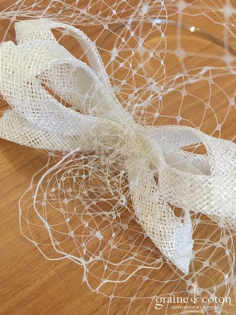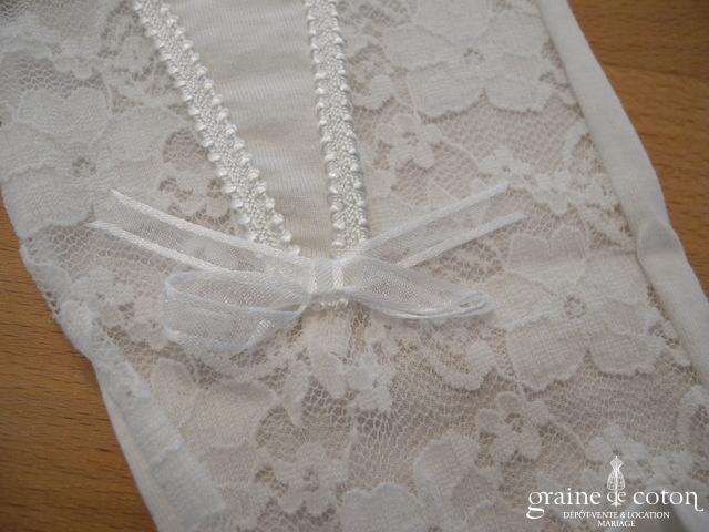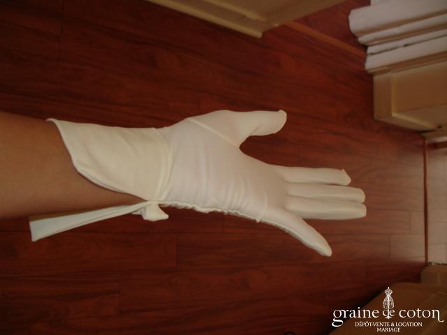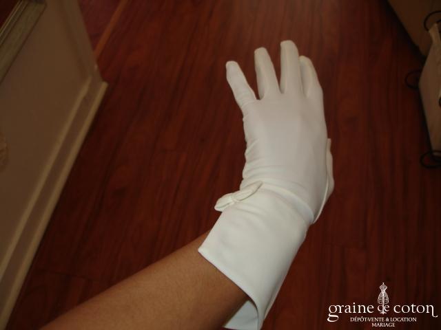 Mitaines courtes en organza ivoire clair avec noeud. Bord dentelé.