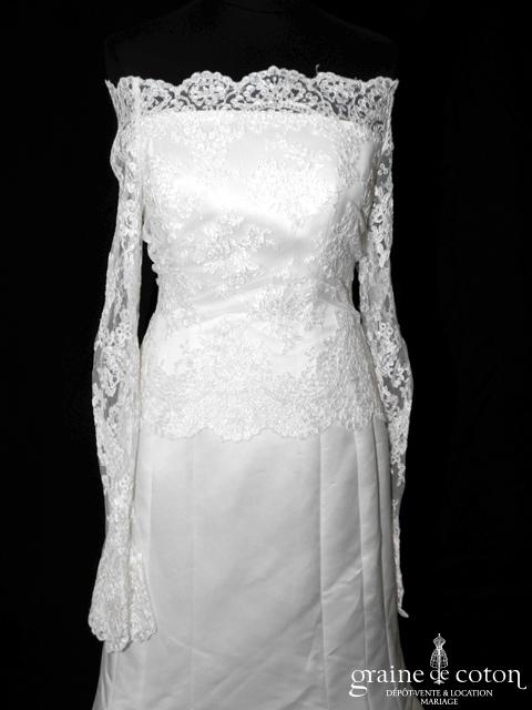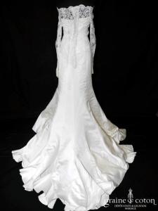Dépôt du fameux modèle « Omar » de Pronovias, sirène en crêpe de soie souple et dentelle de Calais : très confortable à porter, beau tombé et grande élégance. Taille 36, référence …