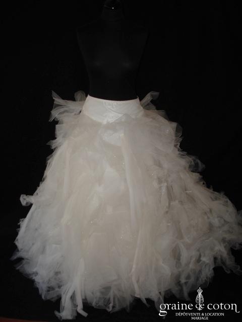 Papillon pince blanc pailleté avec traînée de perles Swarovski rose. Quelques pinces à chignons montées sur la décoration permettent d’agrémenter facilement n’importe quelle coiffure.