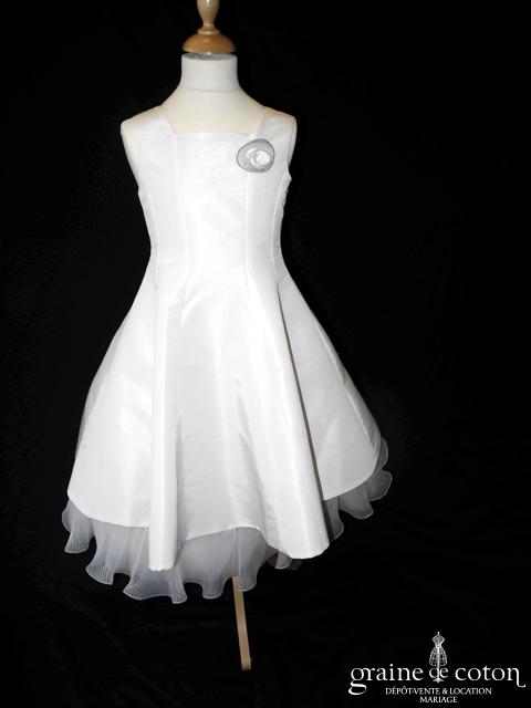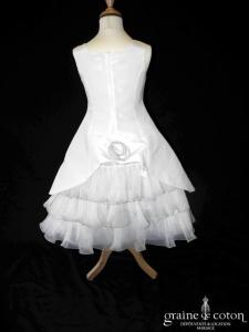 Robe courte en taffetas et tulle blanc. Roses en organza blanc pour décorer la jupe et le haut. Confortable et adorable !