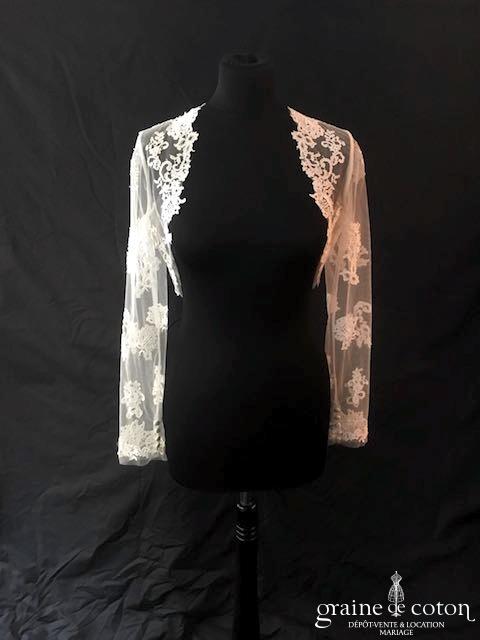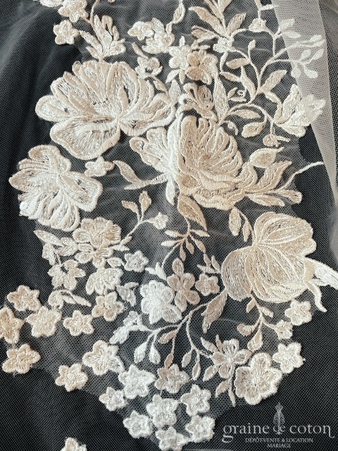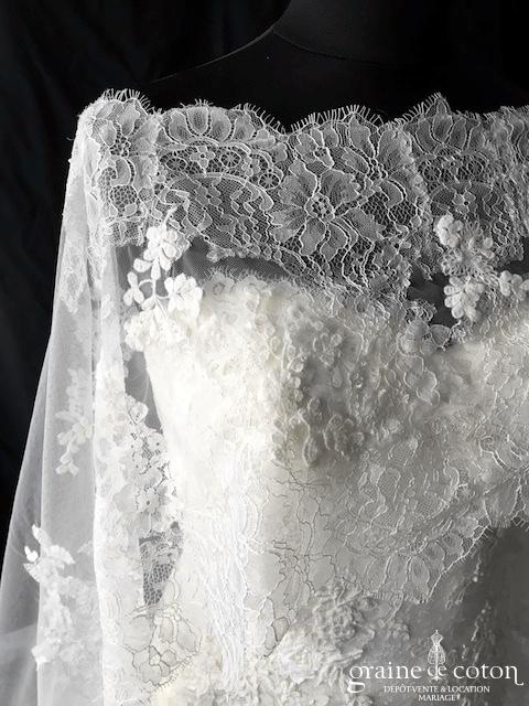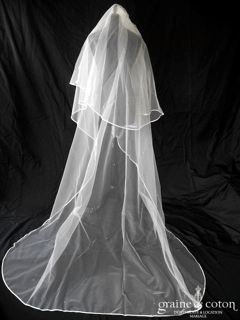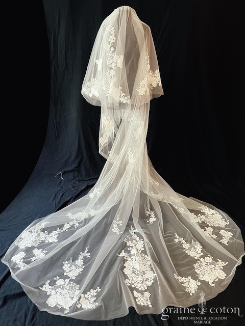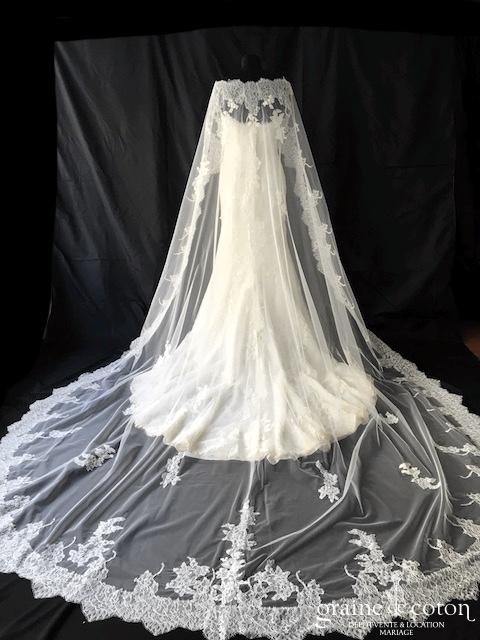 San Patrick pour Pronovias – Voile long de 3 mètres en tulle fluide ivoire bordé de dentelle