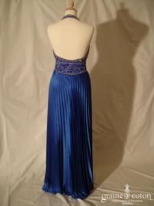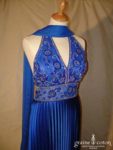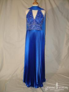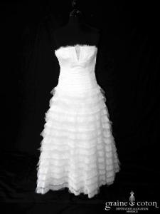 Robe une pièce en tulle nude et dentelle pailletée : bustier avec drapé de tulle sur les épaules, découpe en V devant. Jupe taille haute avec un beau volume tout …