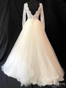 Voile long de 200 cm en tulle ivoire avec perles nacrées