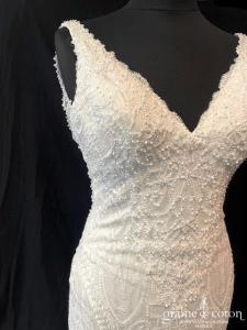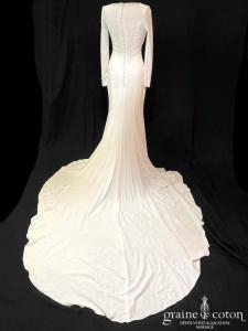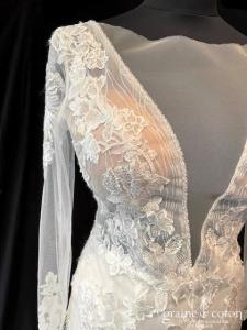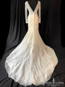 Voile long de 3 mètres en tulle souple ivoire bordé de perles. Monté sur peigne perlé, avec rabat avant de 80 cm.