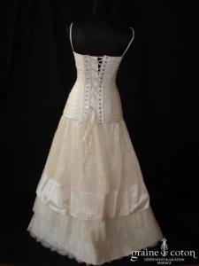 Robe deux pièces ivoire : bustier avec bretelles en soie sauvage ivoire et dentelle, lacé dans le dos. Jupe en organza de soie et rappel de dentelle, forme trapèze peu …