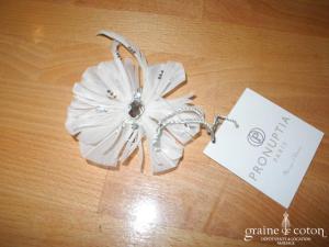 Pince à cheveux ou broche fleur en organza ivoire, coeur perles et strass