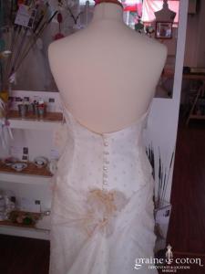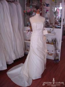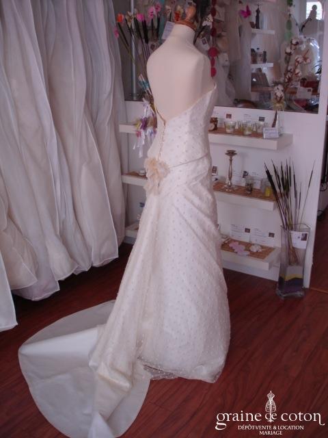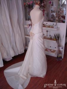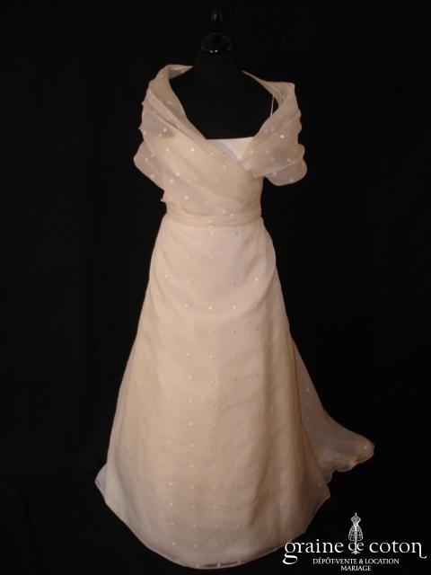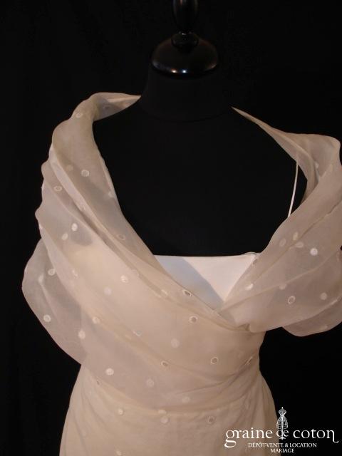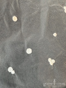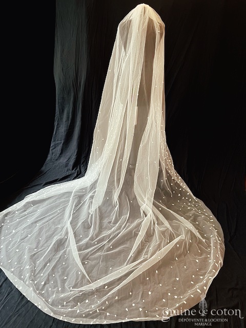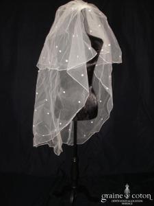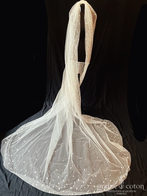 Voile mi-long (aux fesses) en tulle ivoire brodé de gros pois, monté sur peigne. Original !