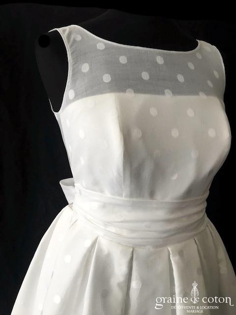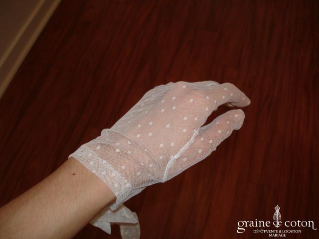 Gants courts très raffinés, en tulle à pois blanc. S’adaptera sans aucun doute à votre tenue de mariée ou de cortège !