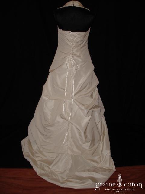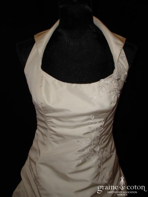Top à manches courtes avec pétales en relief cousus, ivoire clair. Idéal sur une petite jupe ou un pantalon pour un mariage civil.