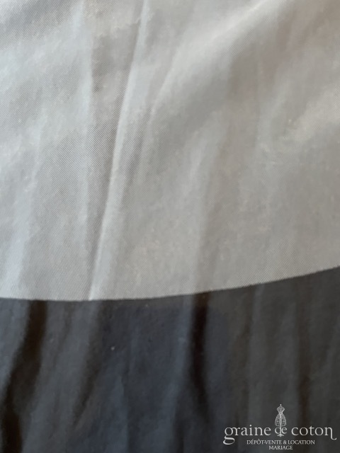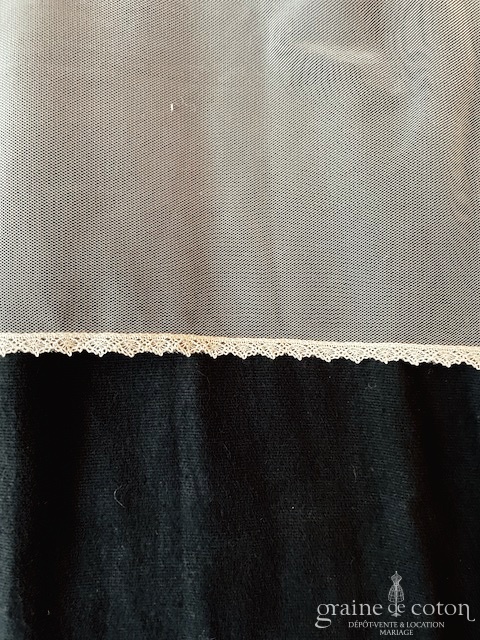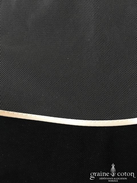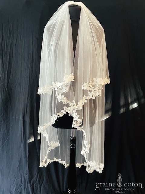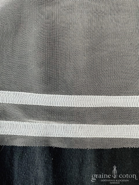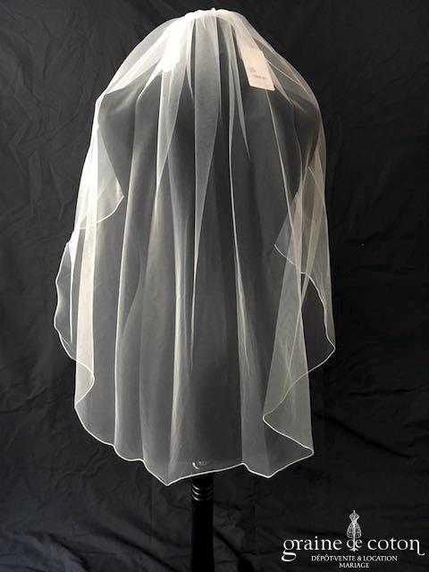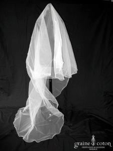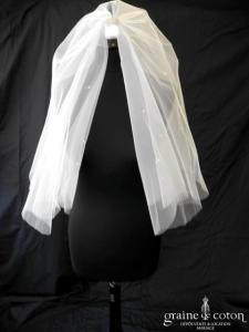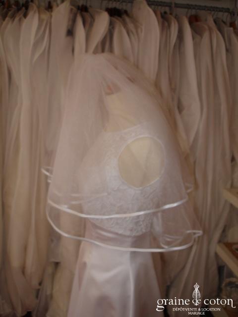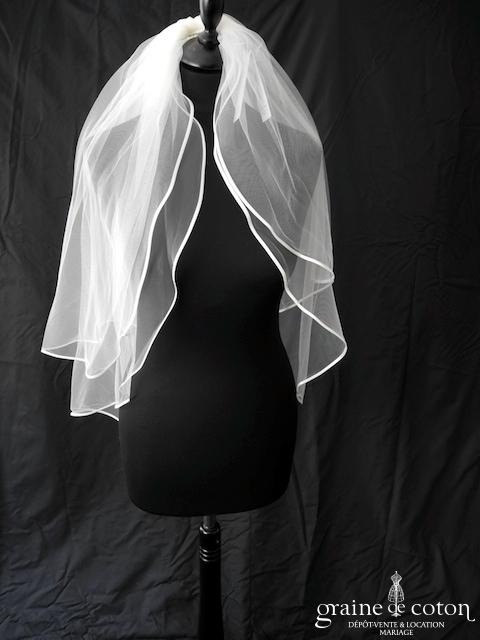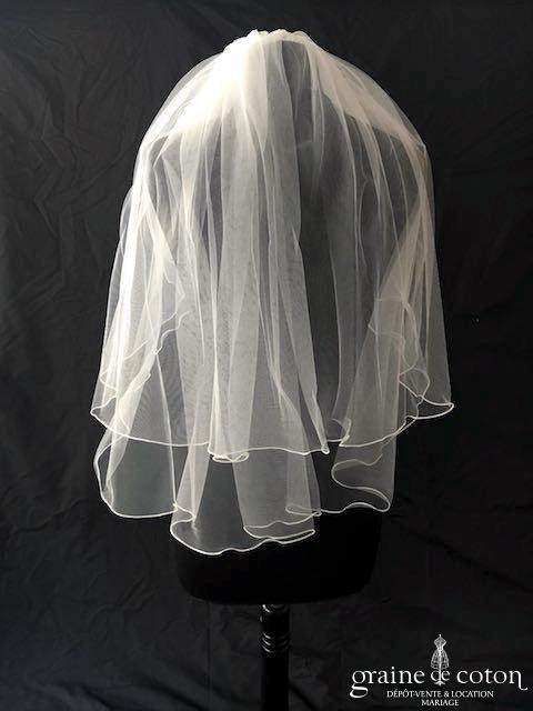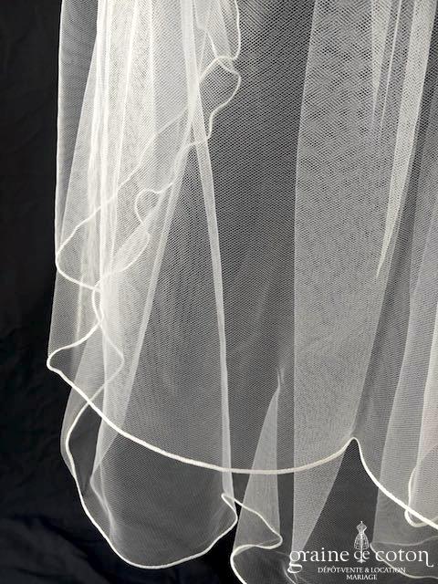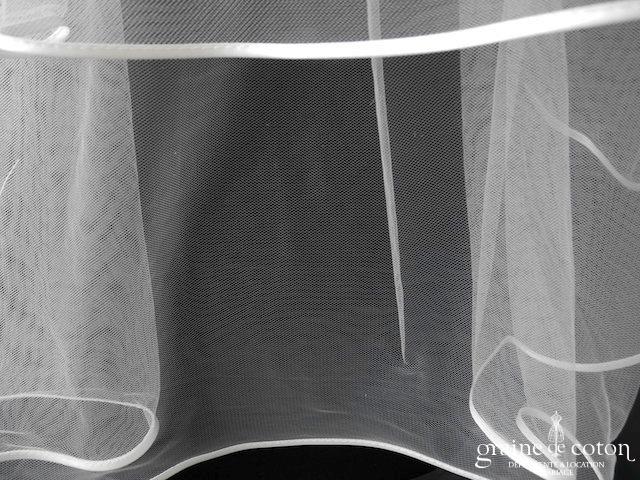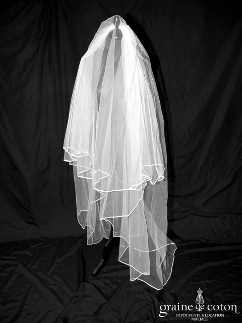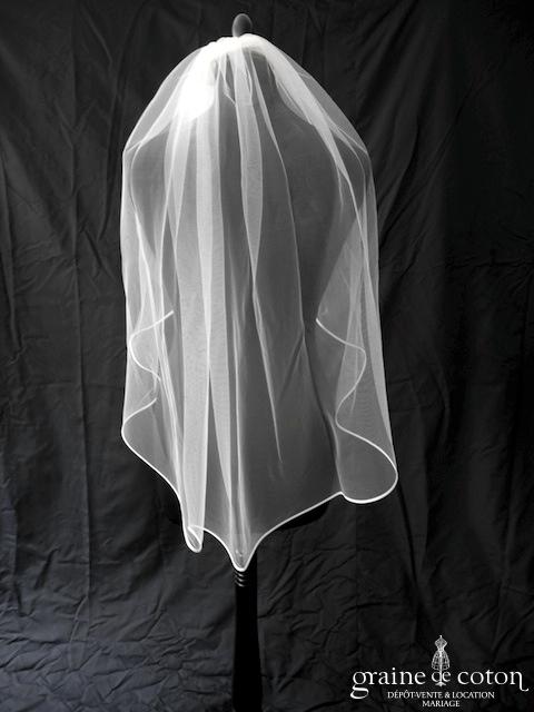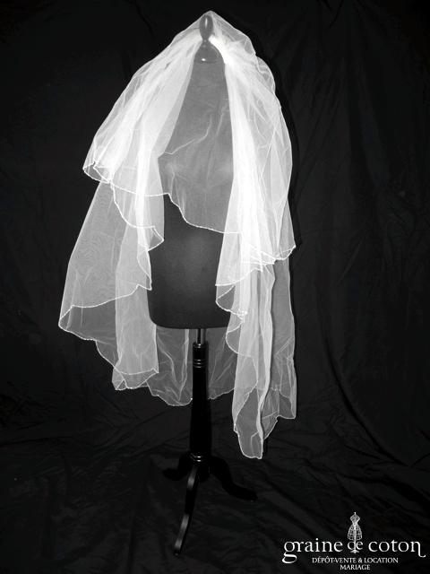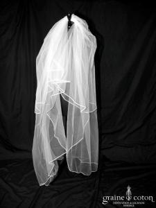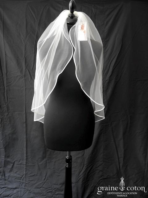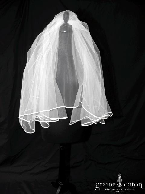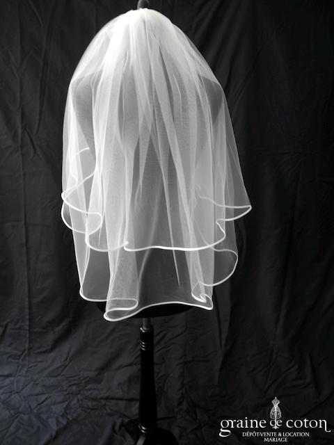 Voile mi long avec 3 rabats de tulle blanc bordé de biais de satin