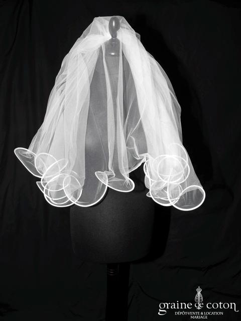 Voile court à volutes en tulle blanc bordé d’un biais de satin