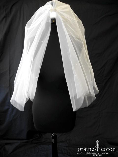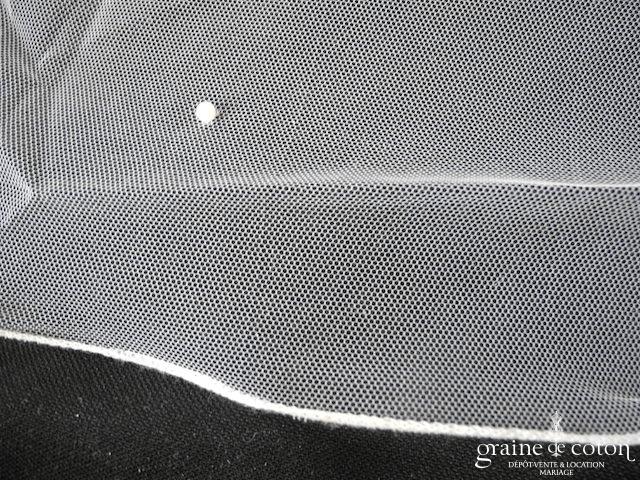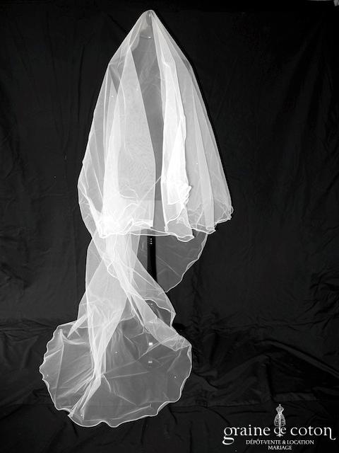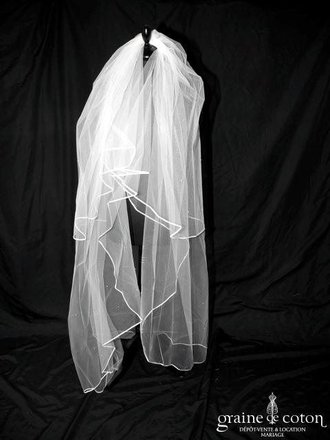 Voile mi long en tulle ivoire bordé d’un biais de satin et parsemé de strass