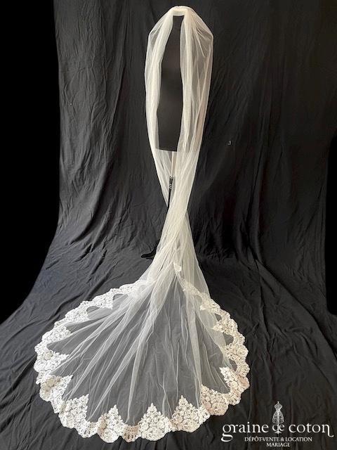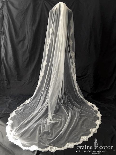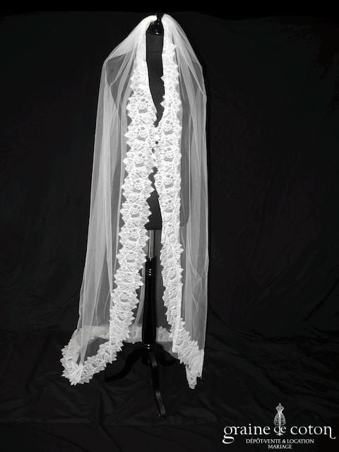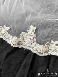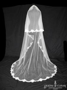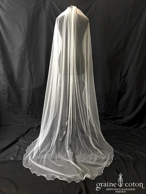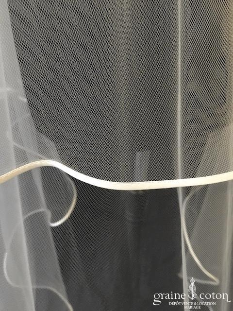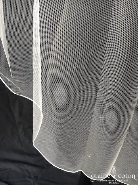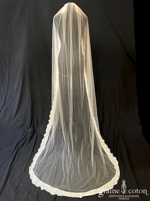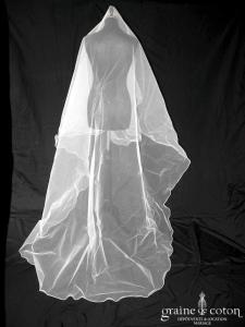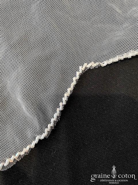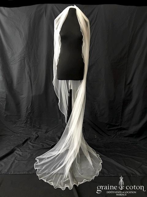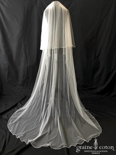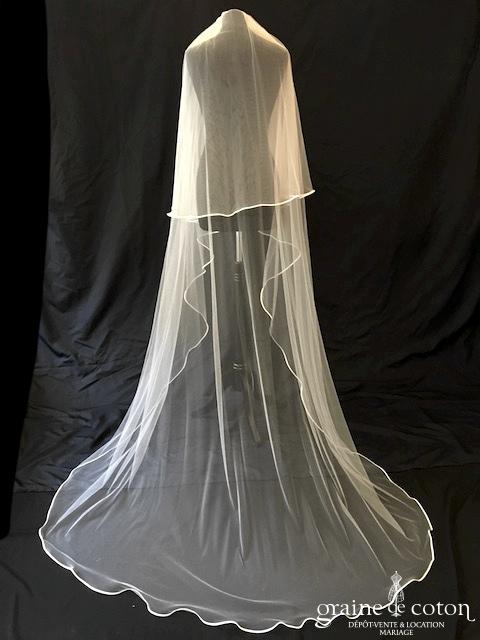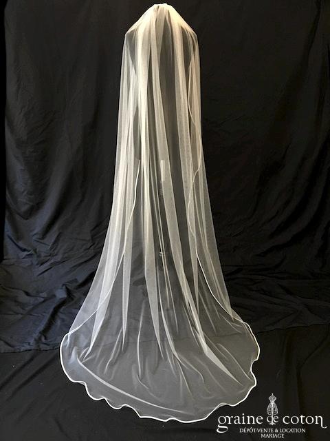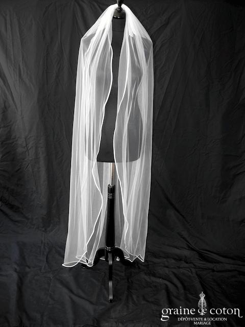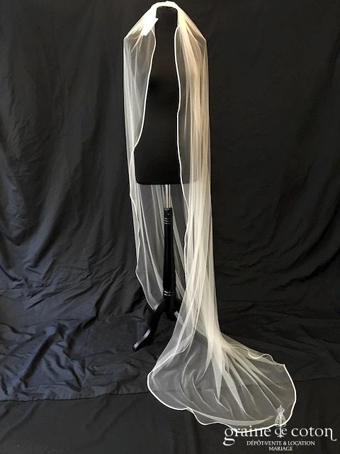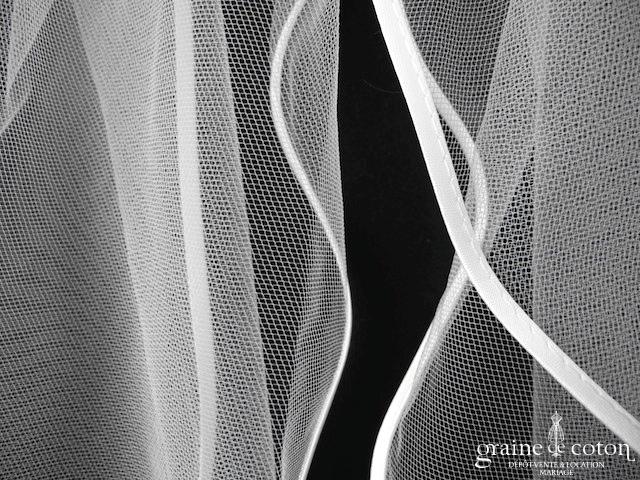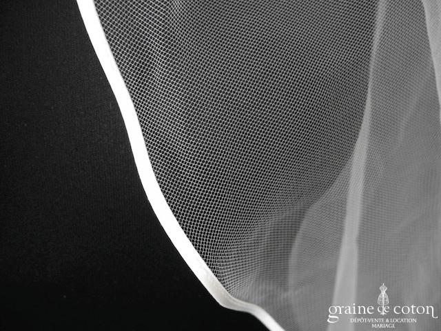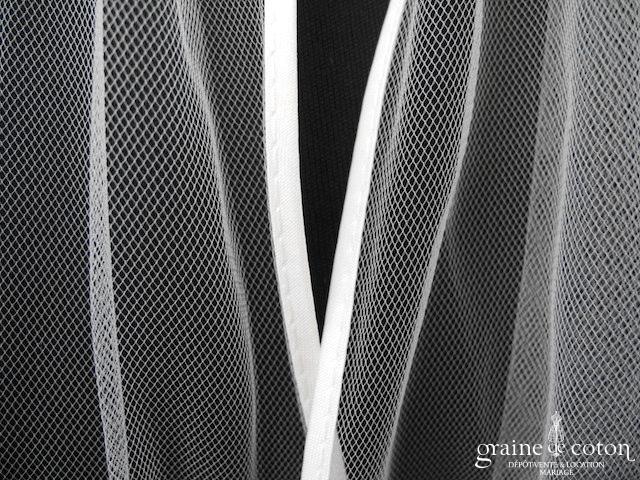 Voile long de 200 cm en tulle ivoire bordé d’un biais de satin