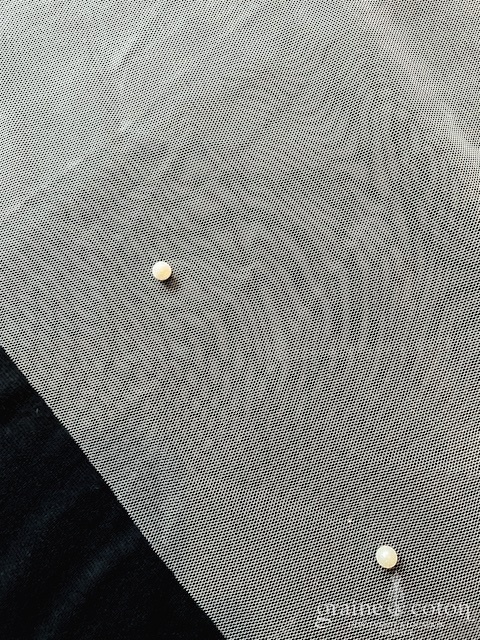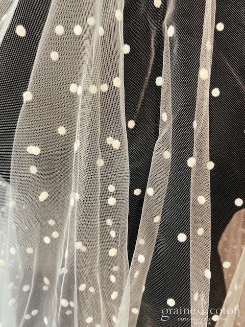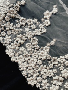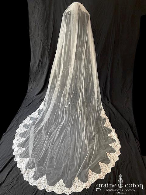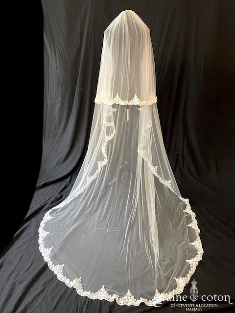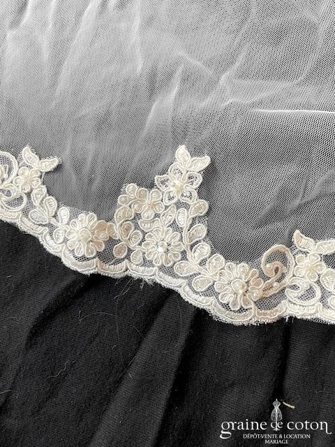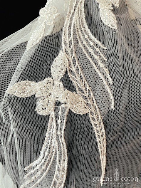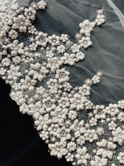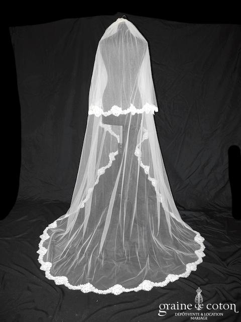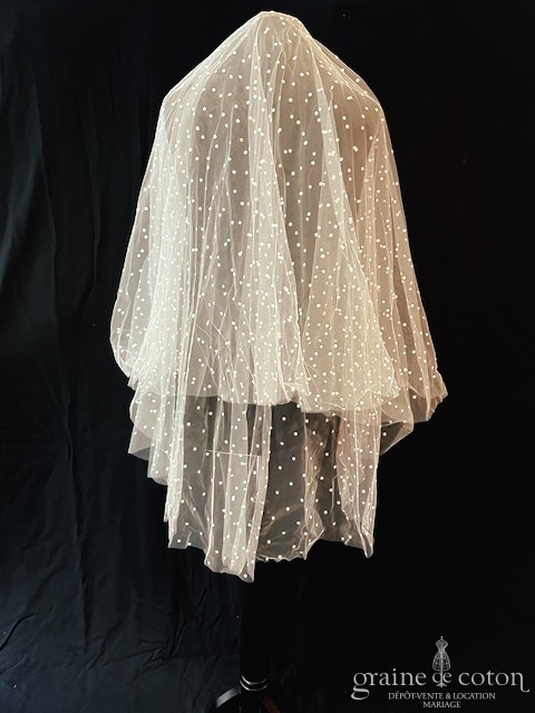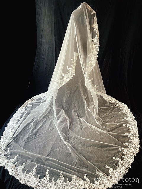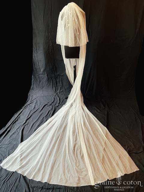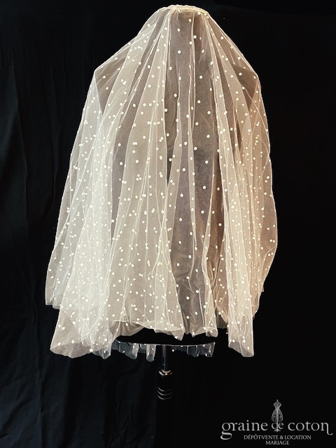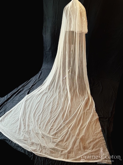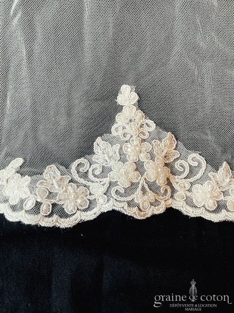 Voile long de 200 cm en tulle ivoire avec perles nacrées