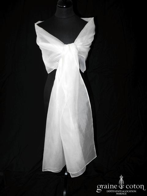 Étole en organza de soie ivoire. Dimensions : 240 * 70 cm.