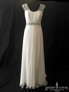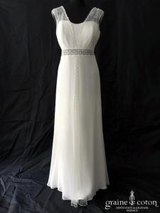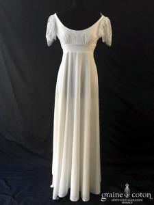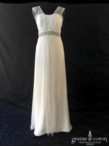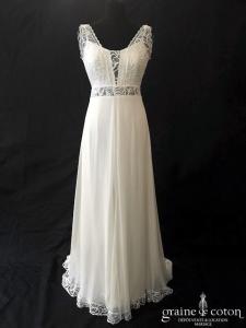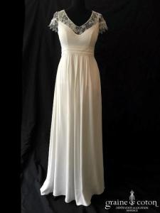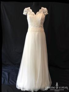 Dépôt de trois nouvelles robes : – le modèle « Féline » de Modeca, esprit bohème champêtre en tulle fluide et dous et guipure. Taille 38-40, référence 6155. – la création « Dialo » …