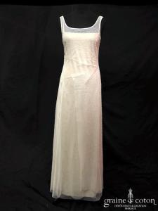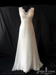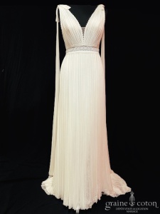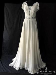 Dépôt de trois nouvelles robes Rosa Clara Couture : – le modèle « Bahia » en crêpe de soie et tulle plumetis, classe et princesse tout en fluidité. Taille 36, référence 6301. …