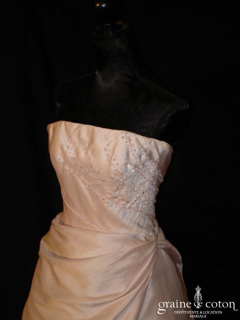Rose Glamour – Voile mi long en tulle fluide ivoire clair bordé de perles
