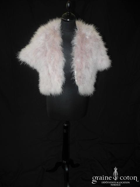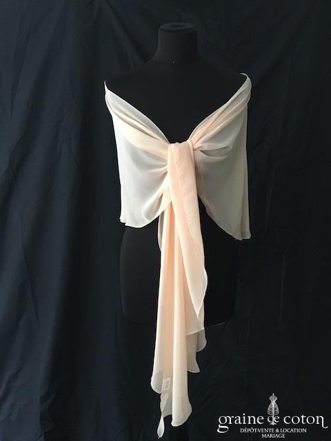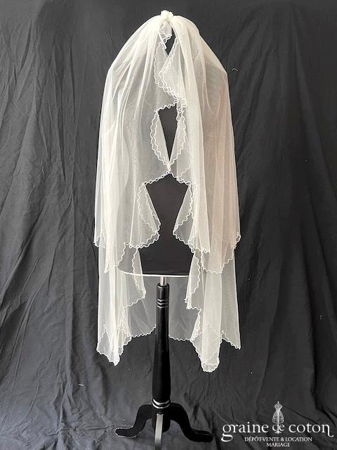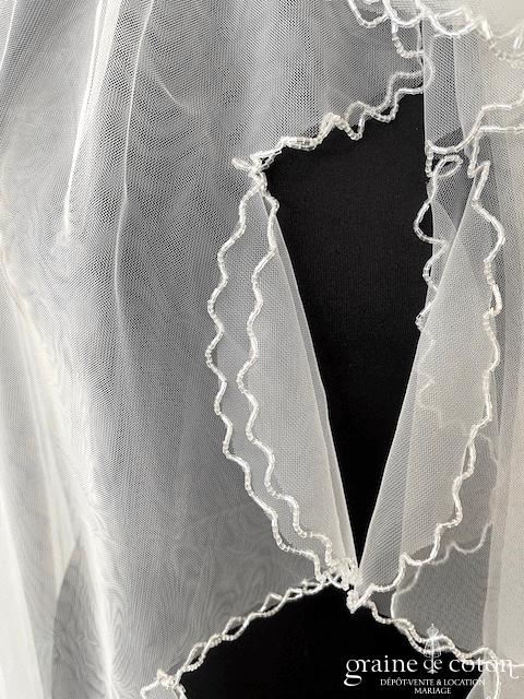 Voile mi long en tulle fluide ivoire clair bordé de perles. Avec rabat avant, non monté sur peigne.