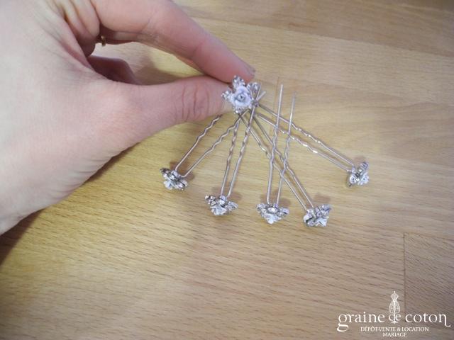 Pics à cheveux fleurs et roses en strass – Lot de 6