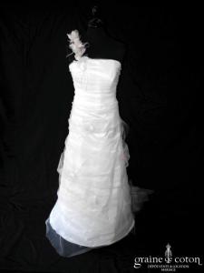 Robe demoiselle d’honneur blanche avec bustier roses en organza et jupe en tulle