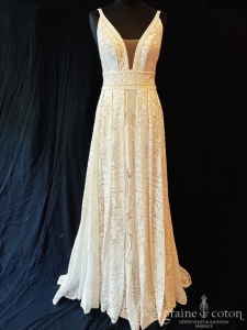 Dépôt du somptueux modèle « Kyara » de Rue de Seine en guipure de coton avec manches longues amovibles : seyant et couture. Taille 38, référence 6343.