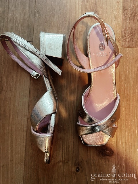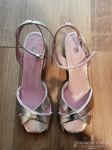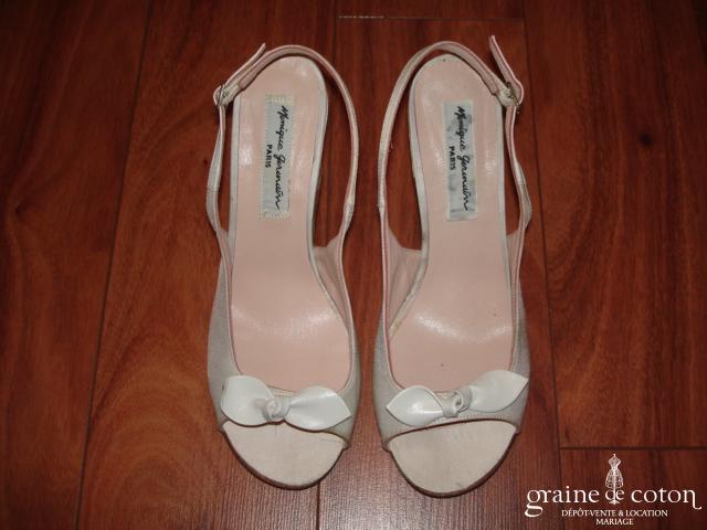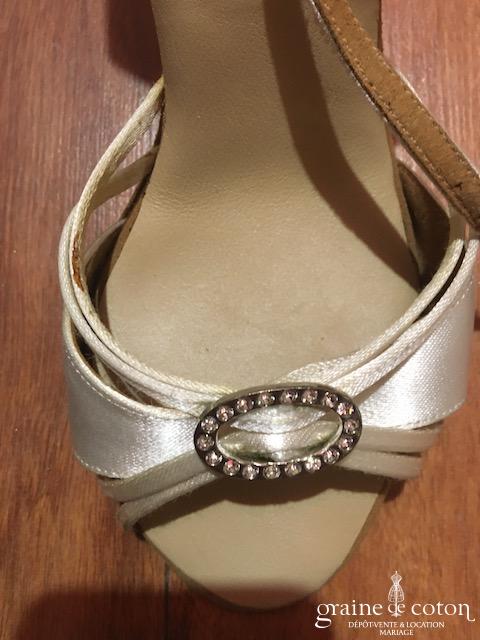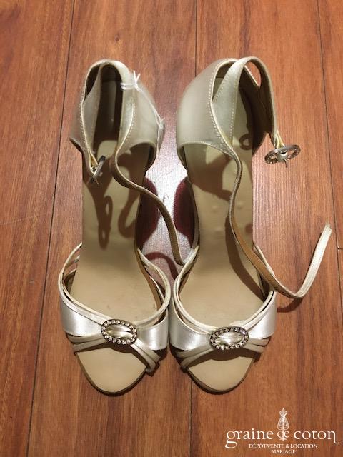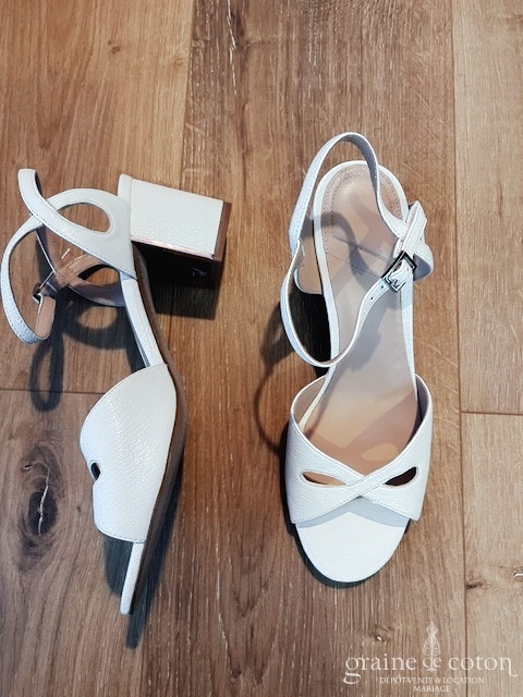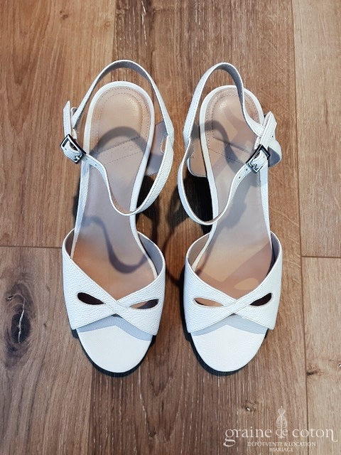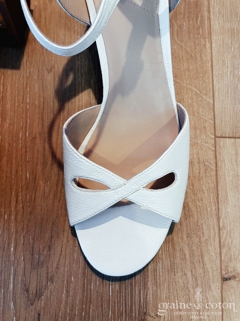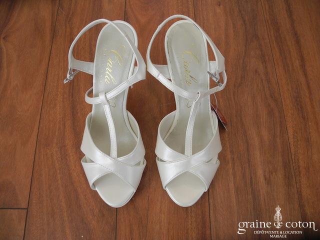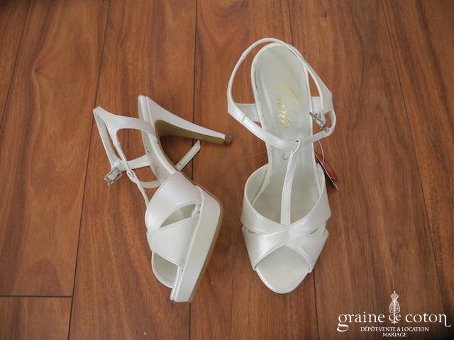 Sandales (chaussures) ivoires : lanières sur le devant. Talon de 10 cm, plate-forme avant de 2 cm.