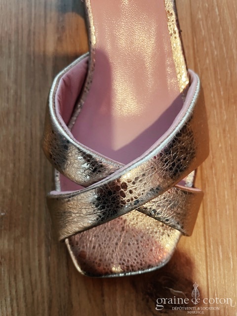 Chaussures d’exception, vendues uniquement chez les grands créateurs. Sandales petit talon avec strass Swarovski. Semelle en cuir. Talon 6 cm.