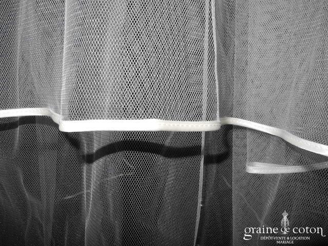 Voile long de 200 cm en tulle ivoire bordé d’un biais de satin