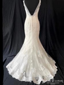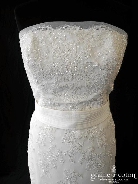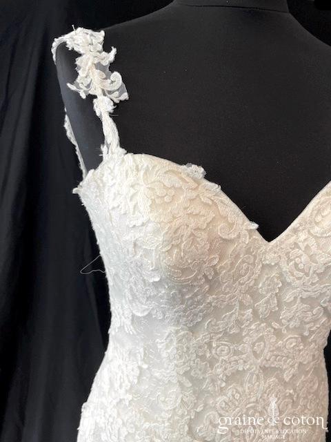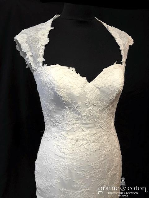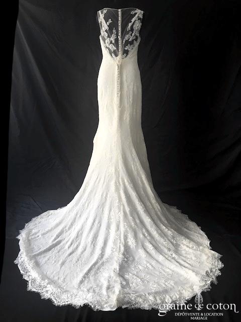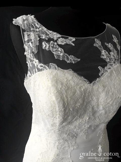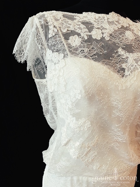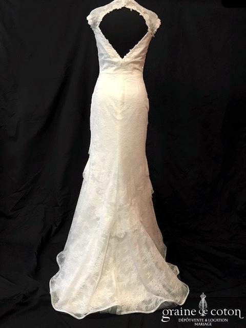 Dépôt du modèle « Renzo » d’Alma Novia, tout en dentelle ivoire avec décolleté coeur et dos nu en V. Somptueuse ;o) Taille 38, référence 6041.