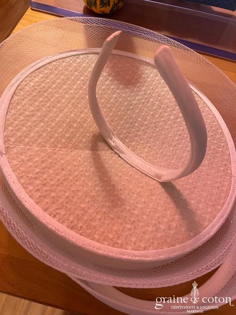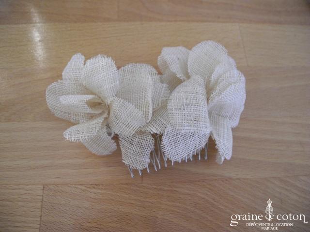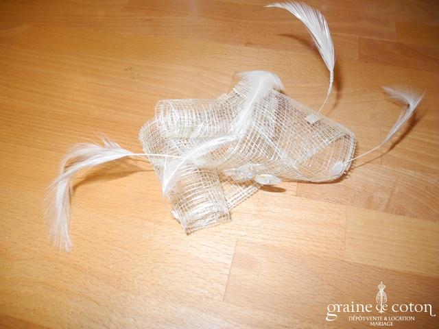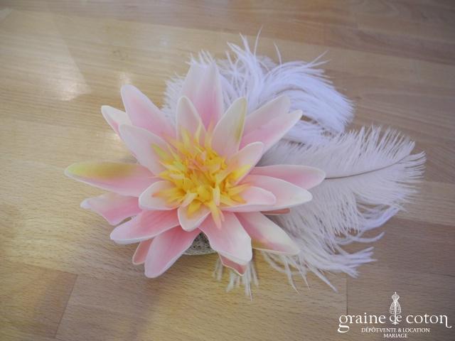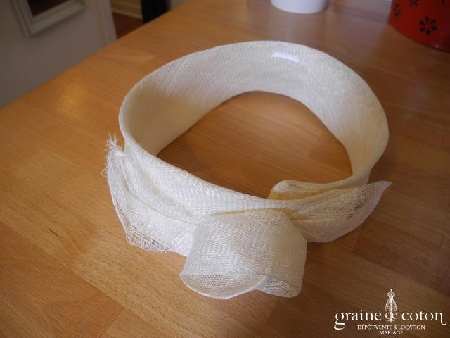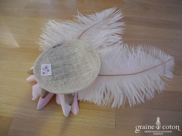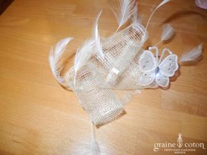 Coiffe fleur en sisal ivoire avec plumes. A monter sur serre-tête (fourni) ou bien à fixer dans la coiffure avec des pics à chignons.