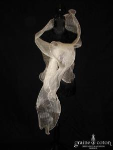 Pochette en satin et sisal ivoire : 2 lanières possibles fournies, une longue pour un porté épaule et une courte pour un porté main.