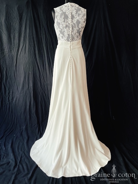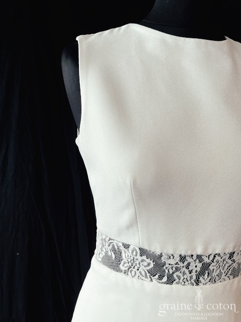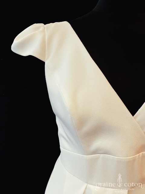 Boléro en organza de soie ivoire clair avec guipure de dentelle, ouvert sur l’avant. Idéal pour couvrir les épaules sans cacher la robe.