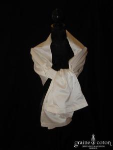 Boléro en organza de soie ivoire clair manches longues à porter ouvert sur l’arrière. Elégant et raffiné, un accessoire pour transformer votre tenue.