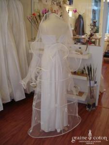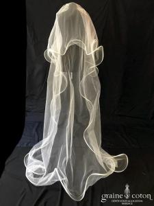 Suzanne Ermann – Voile en tulle ivoire à volutes bordées de satin noir