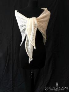 Voile long de 2,25 mètres à volutes blanc cassé, avec rabat avant. Non monté sur peigne, à piquer dans la coiffure.