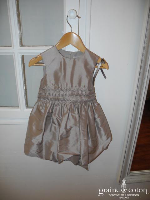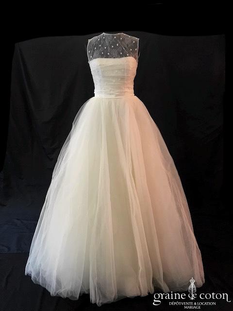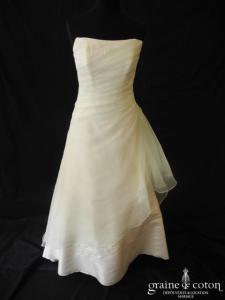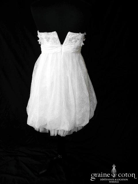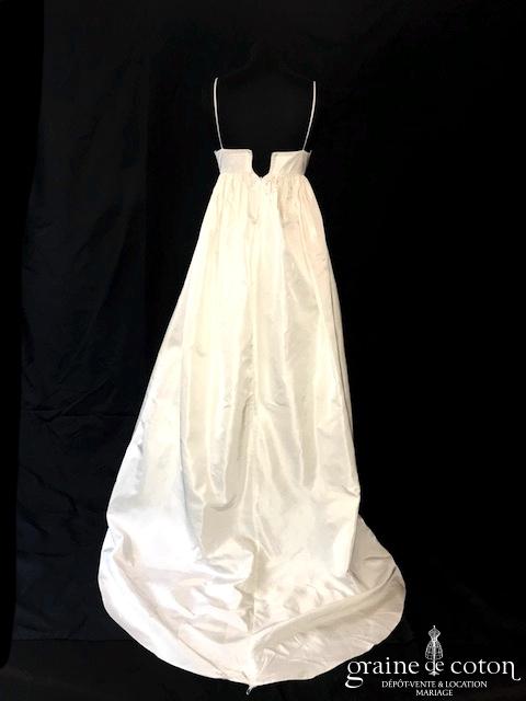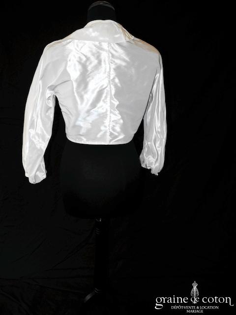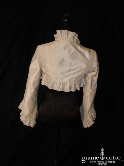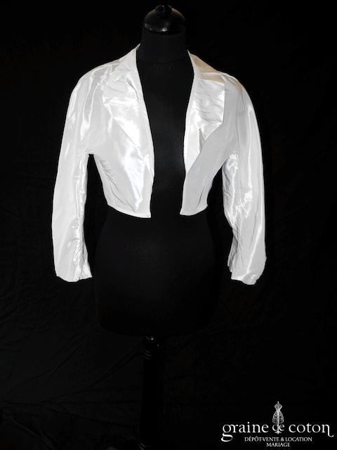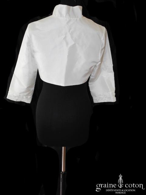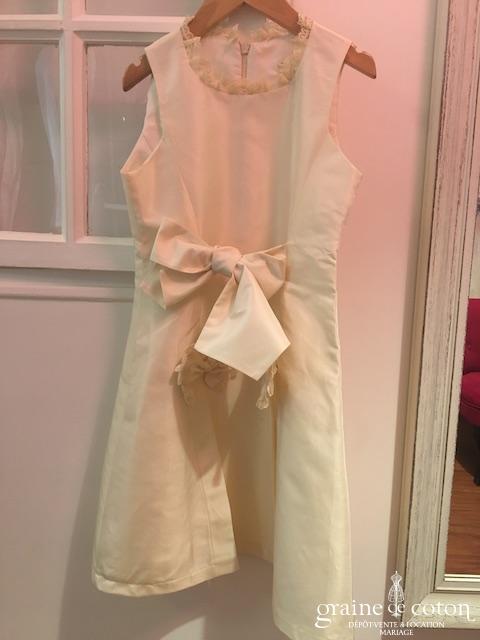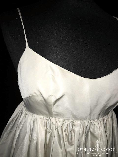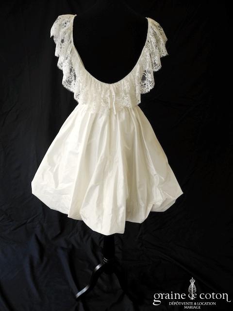 Robe courte en taffetas ivoire à manches longues évasées. Idéale en 2e tenue civile ou pour la soirée.