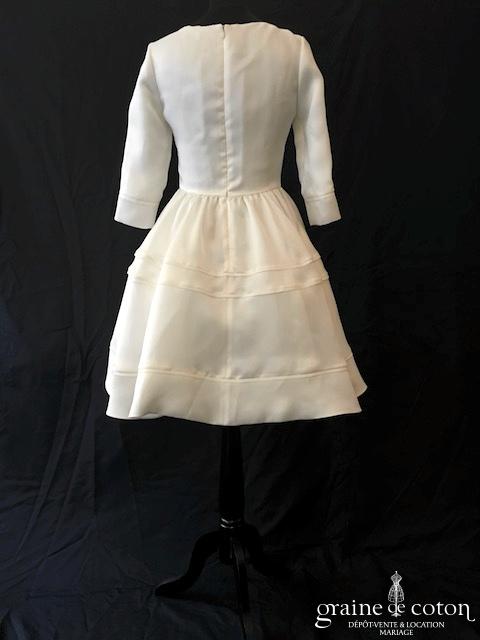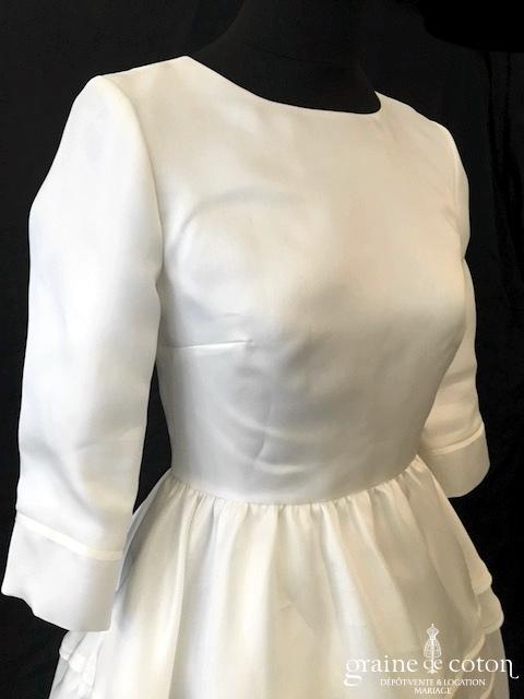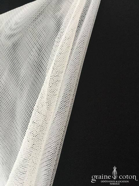 Étole triple en tulle souple ivoire, à porter sur les bras ou bien nouée. Très beau tombé, belles matières.